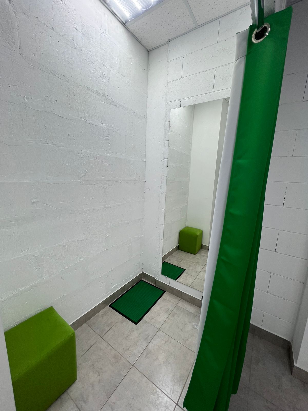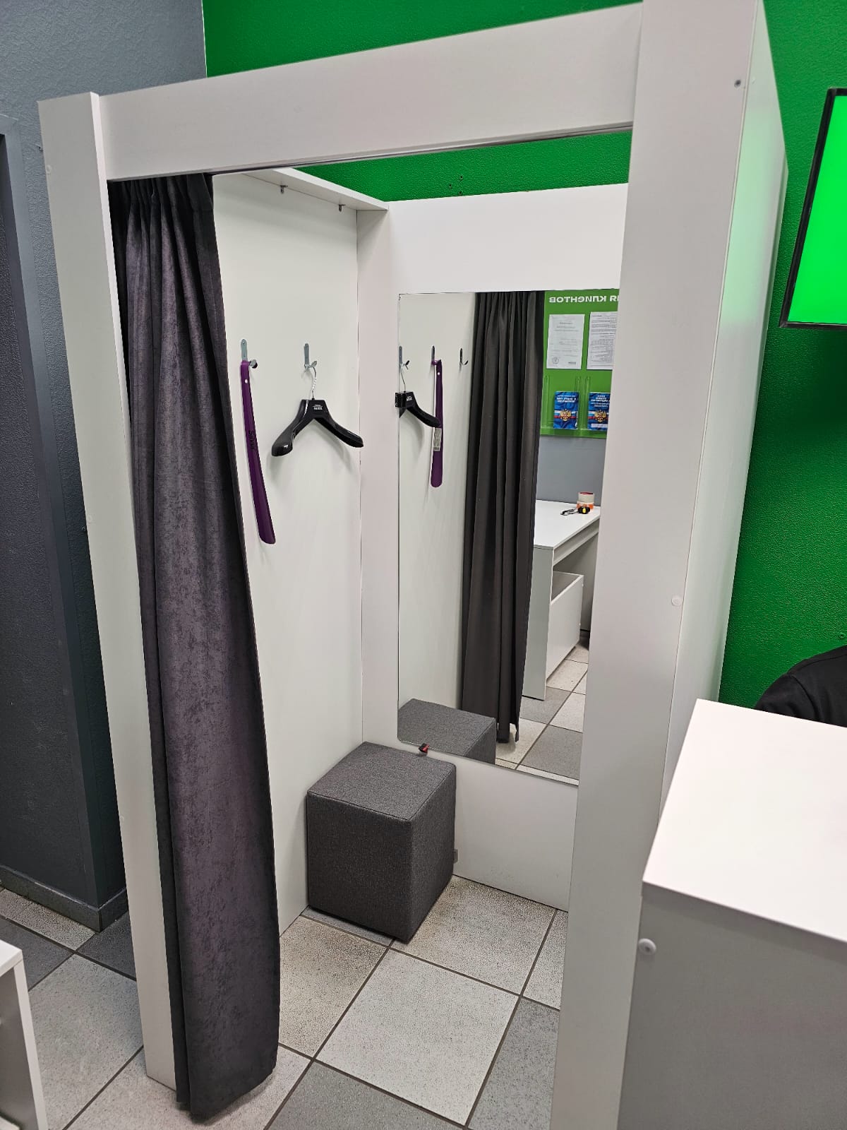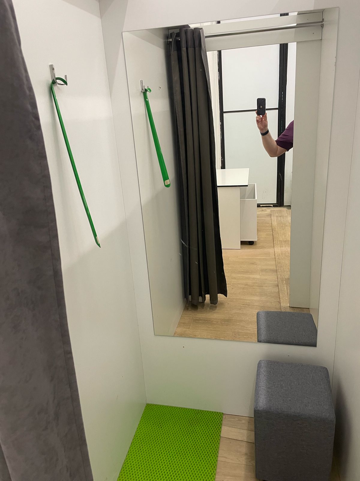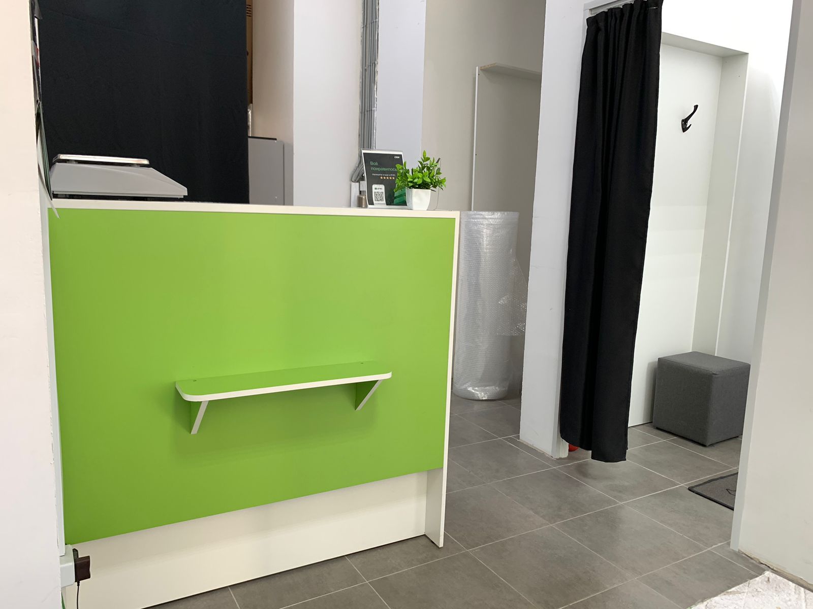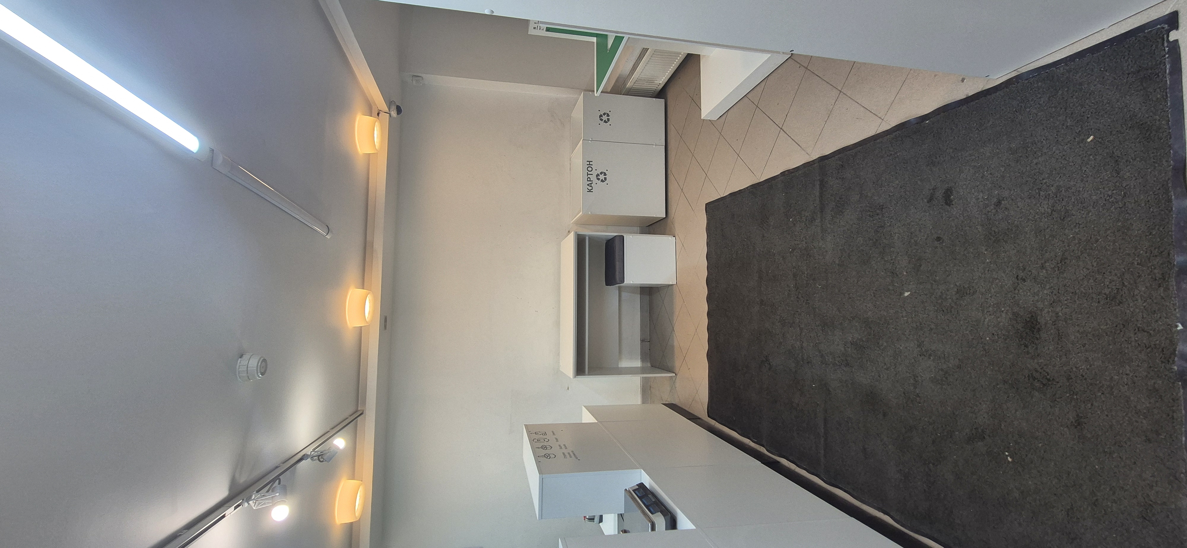Войти в административное здание. Вход справа от мебельного салона (черная дверь). Постамат расположен на 1 этаже при входе.