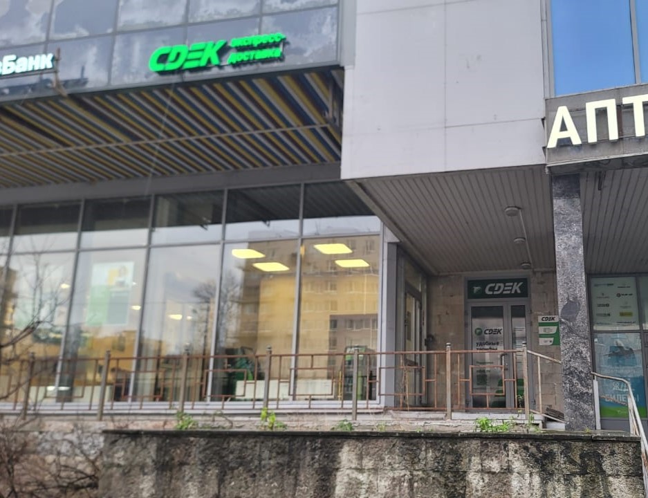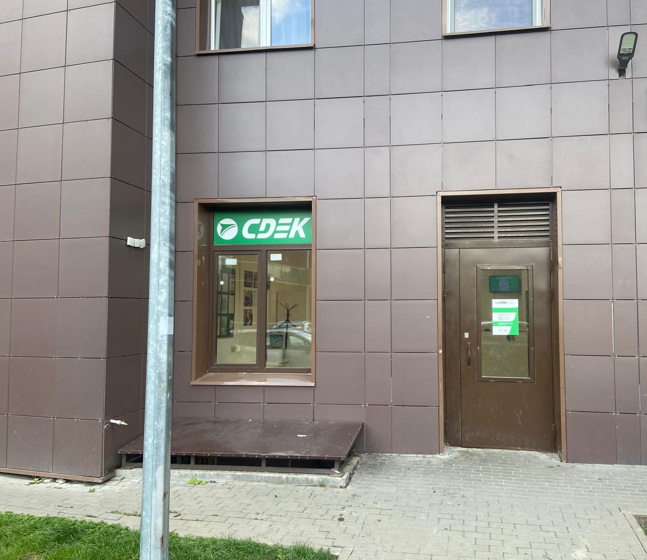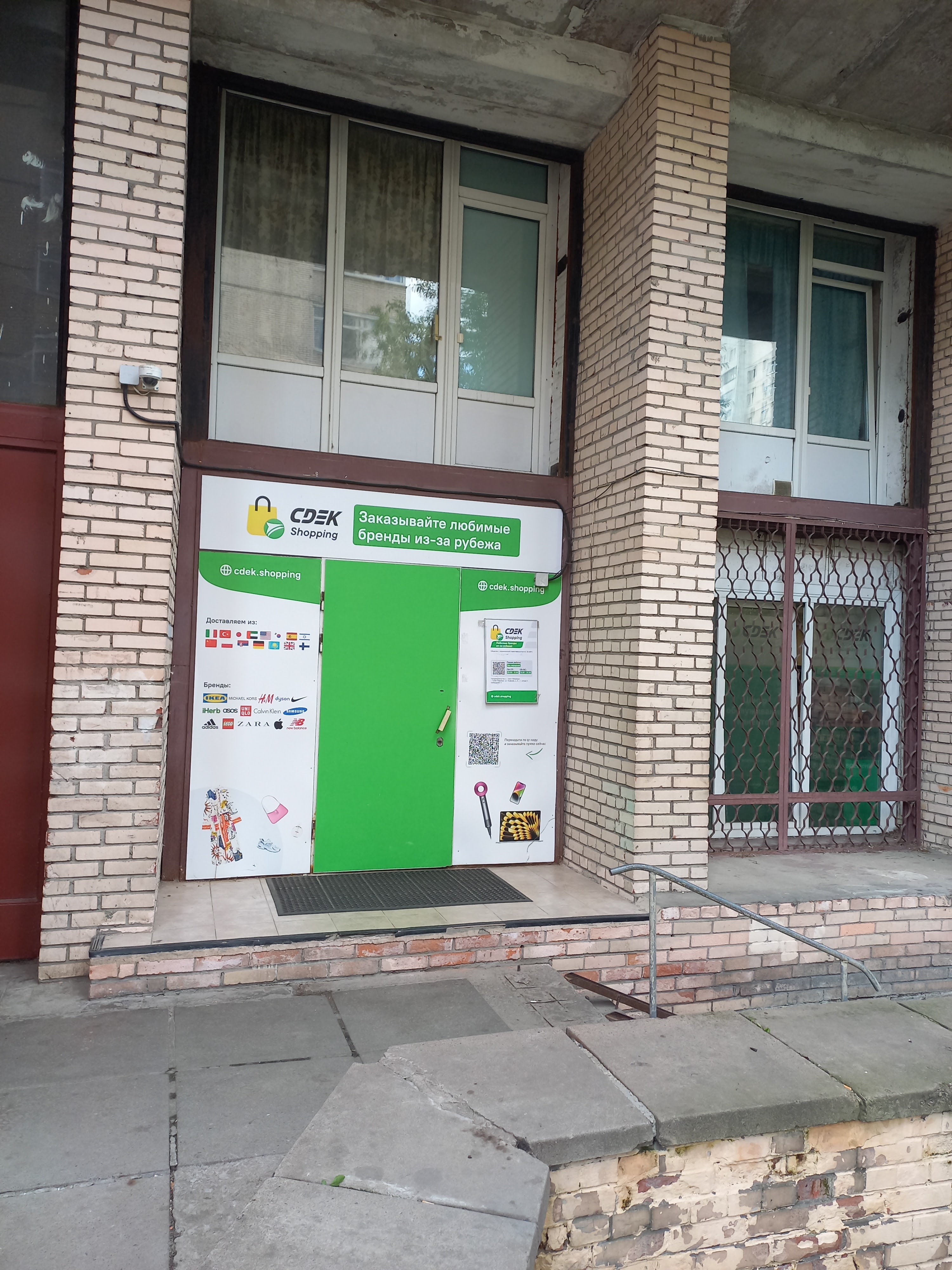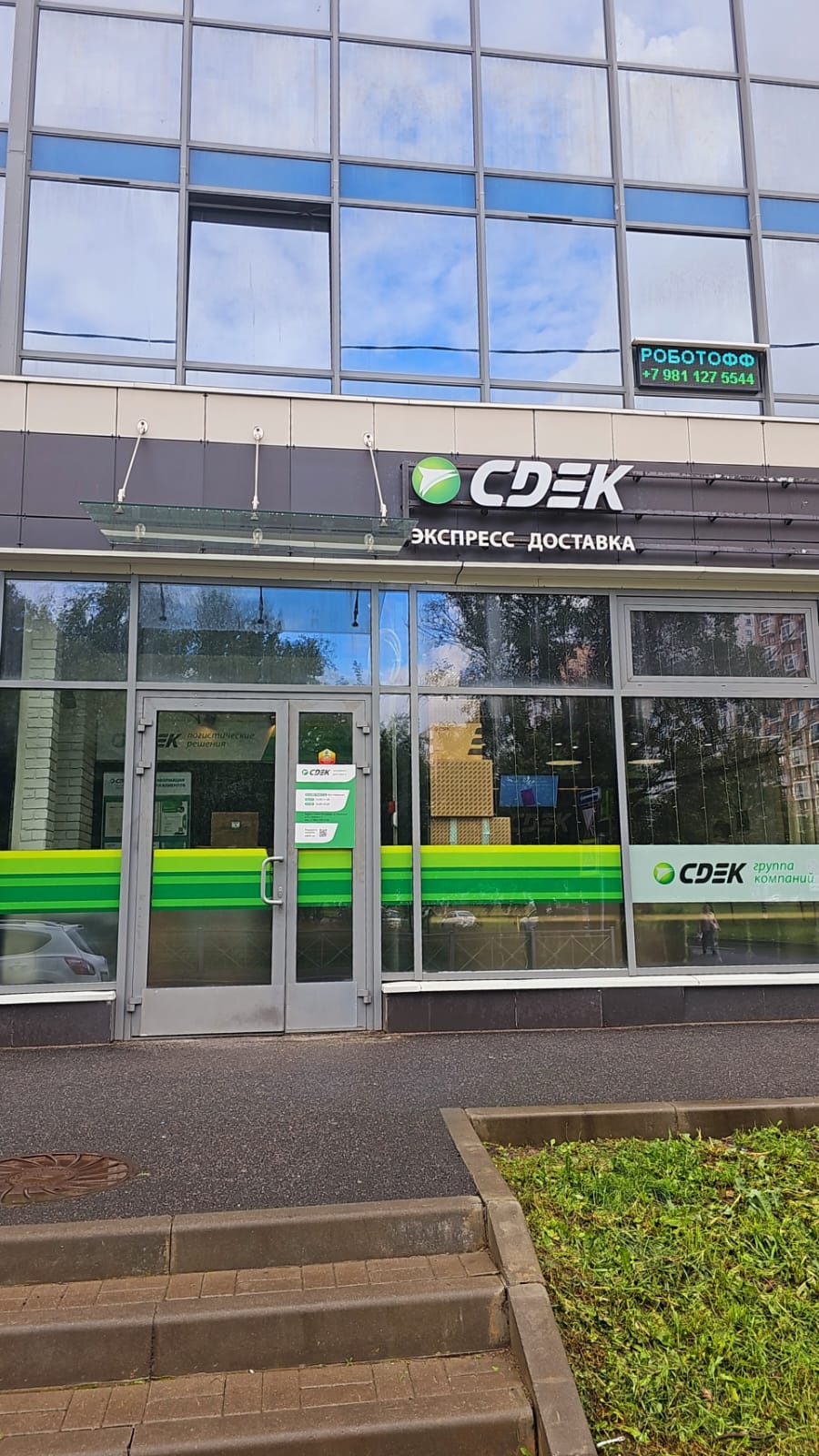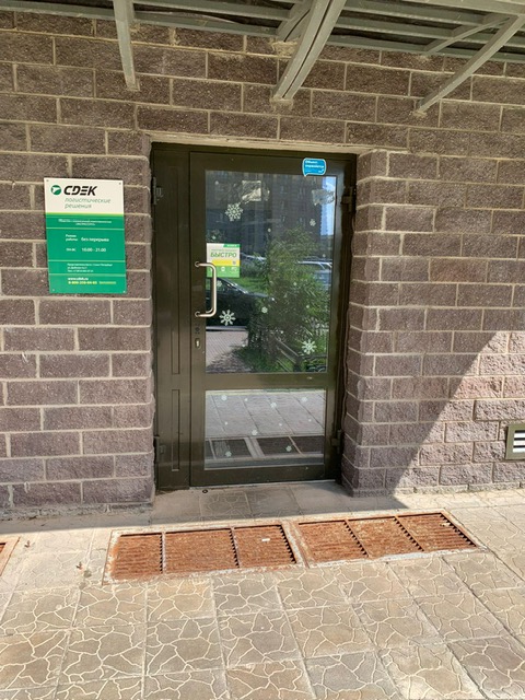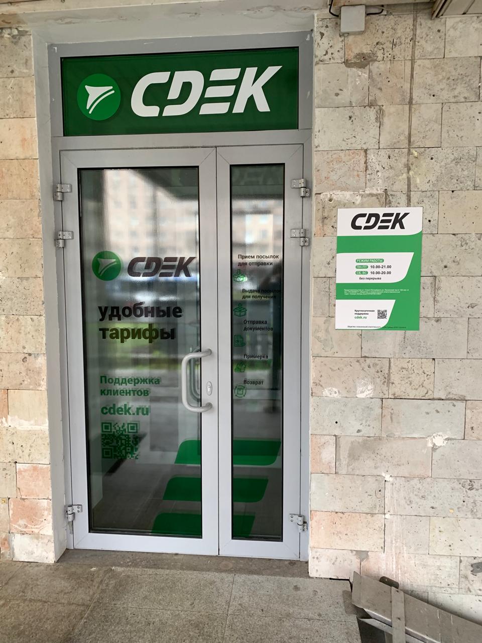 От автобусной остановки "Проспект Культуры", вниз, вдоль жилых домов по проспекту Культуры, у первого жилого дома - вывеска "CDEK".