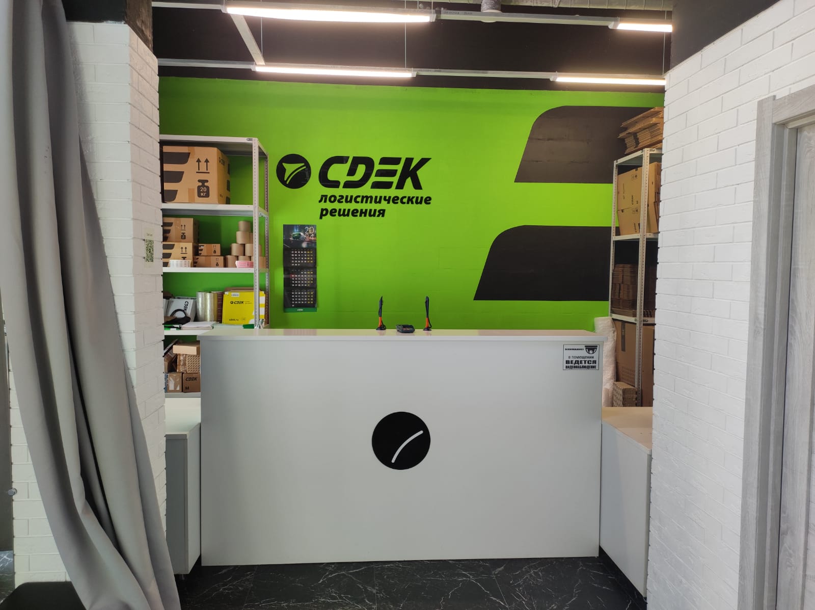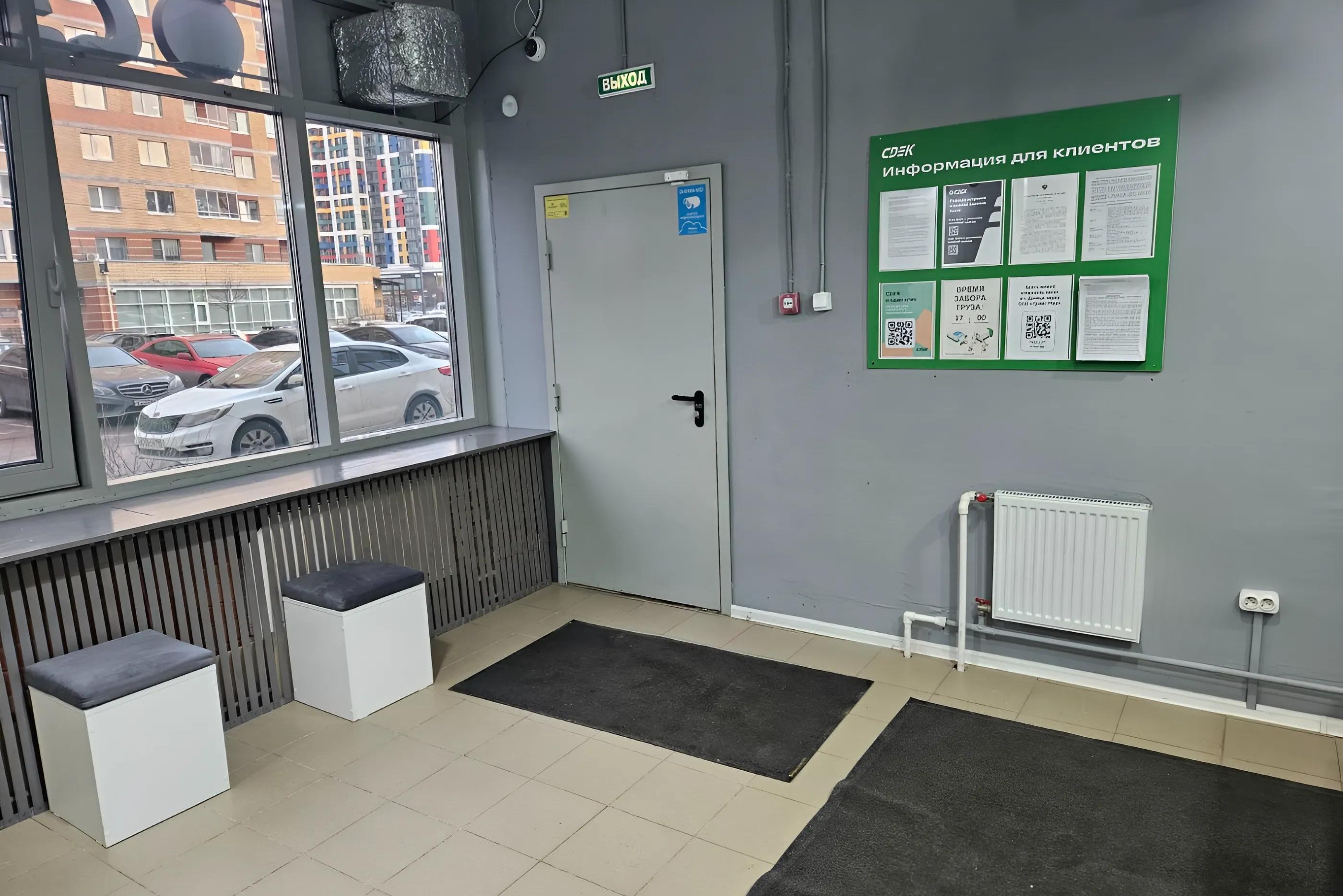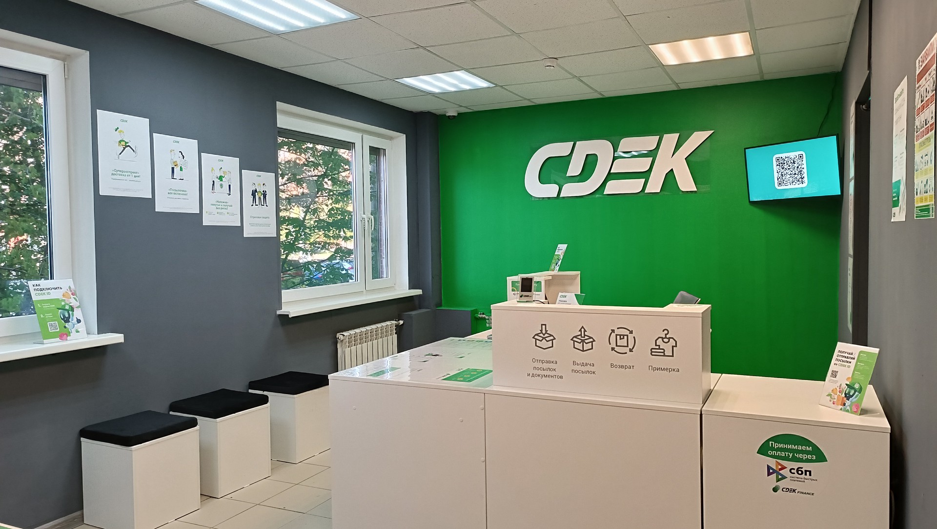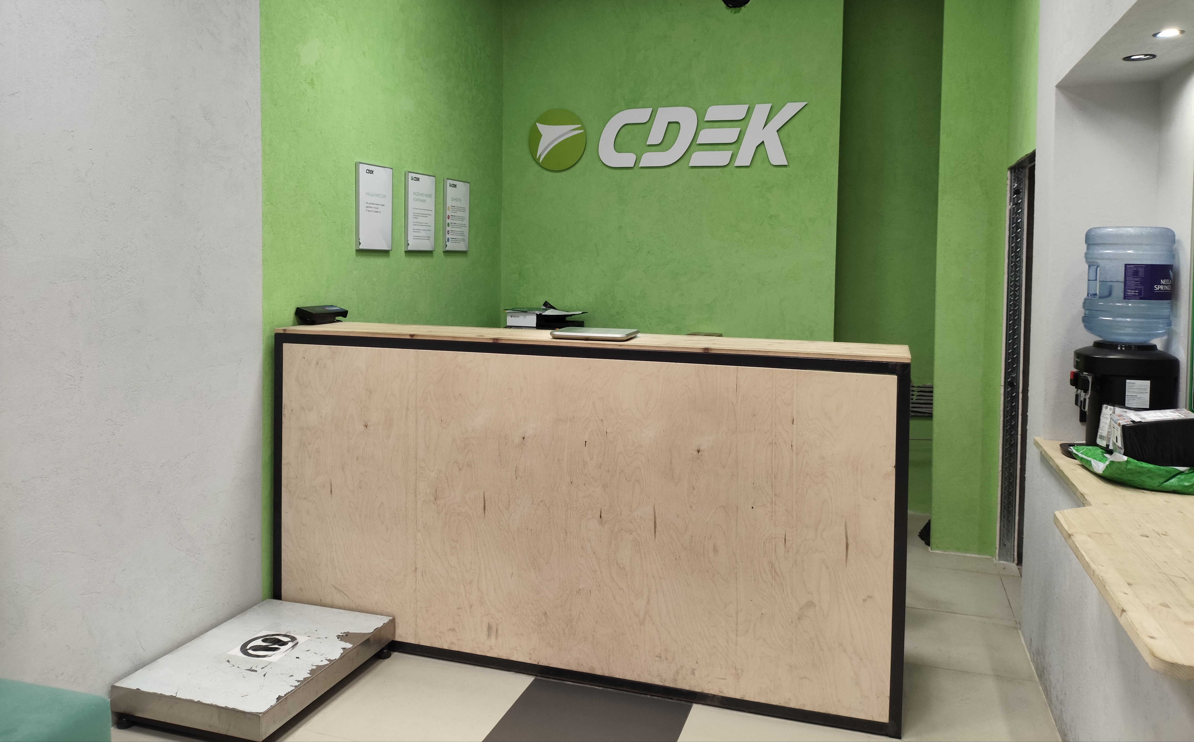 От автобусной остановки "Проспект Культуры", вниз, вдоль жилых домов по проспекту Культуры, у первого жилого дома - вывеска "CDEK".