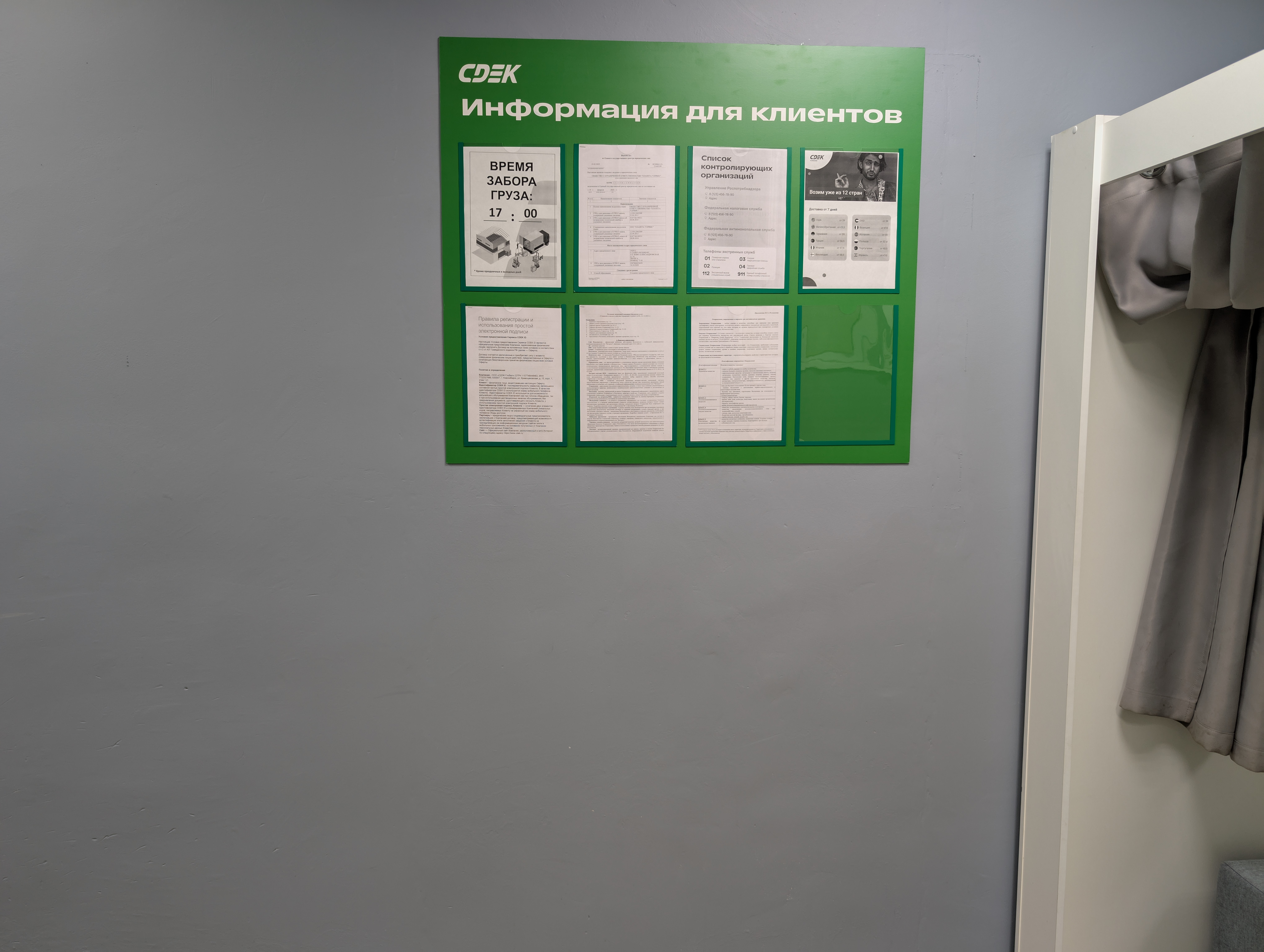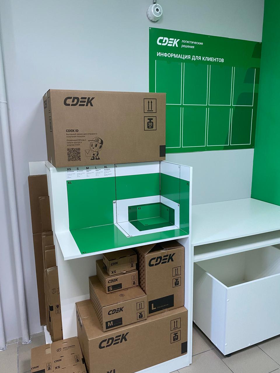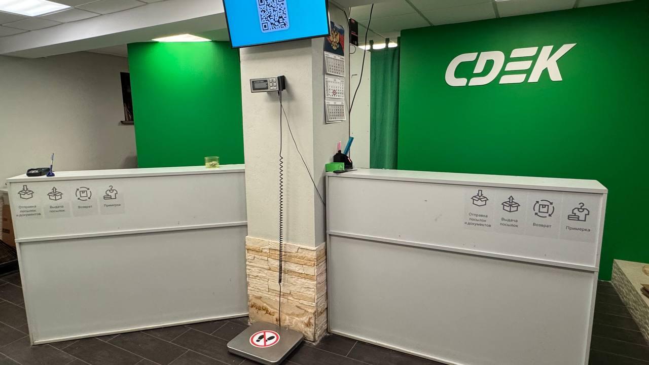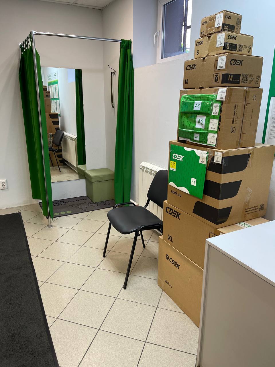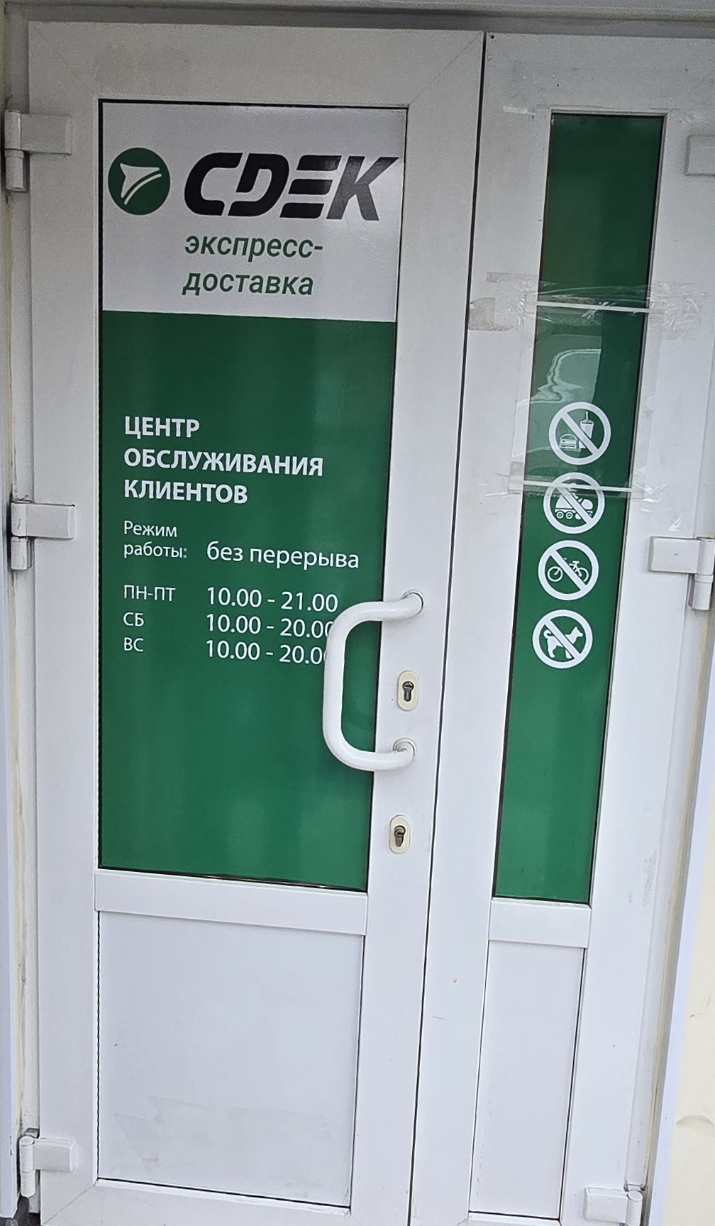 От автобусной остановки "Проспект Культуры", вниз, вдоль жилых домов по проспекту Культуры, у первого жилого дома - вывеска "CDEK".