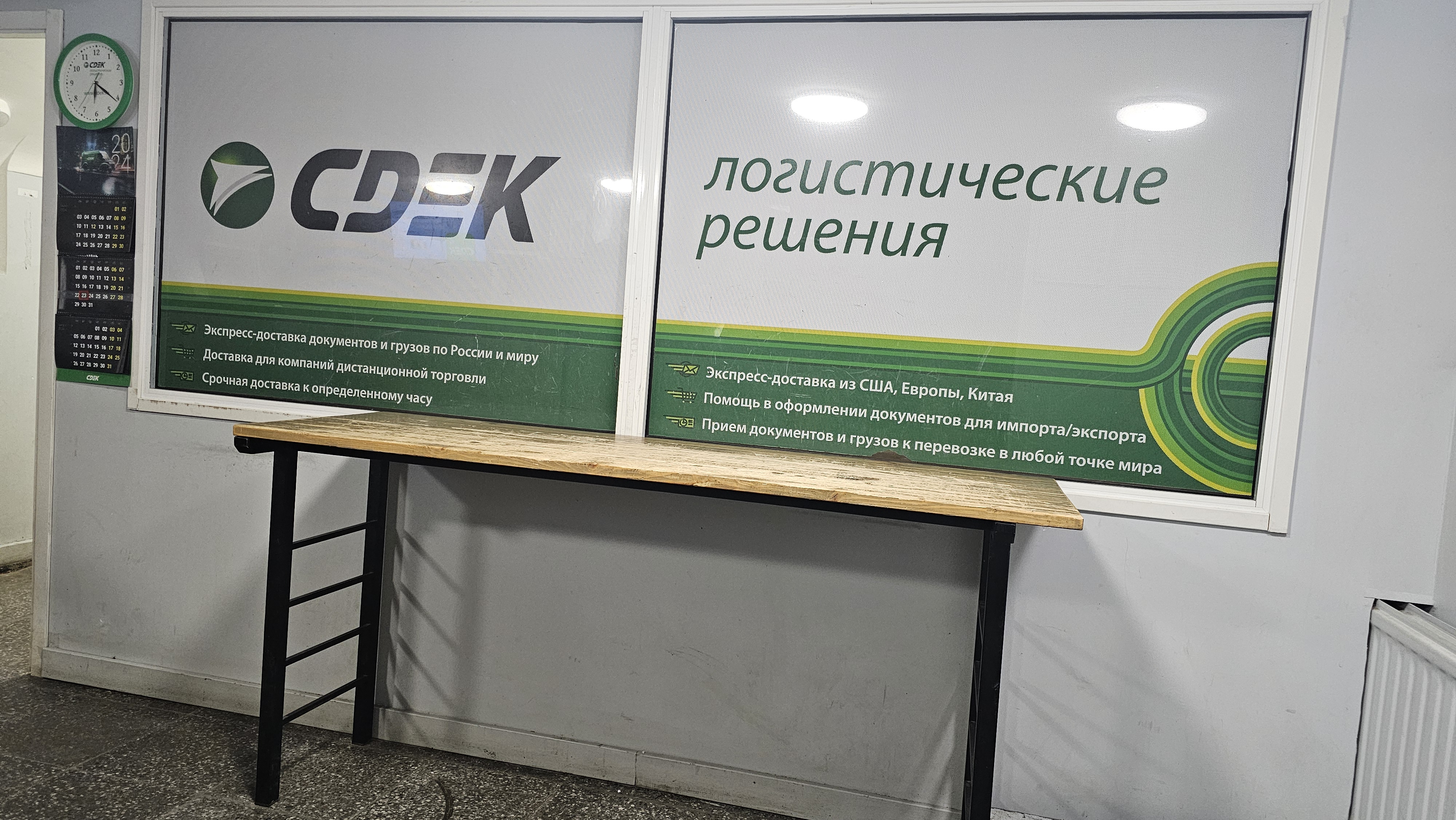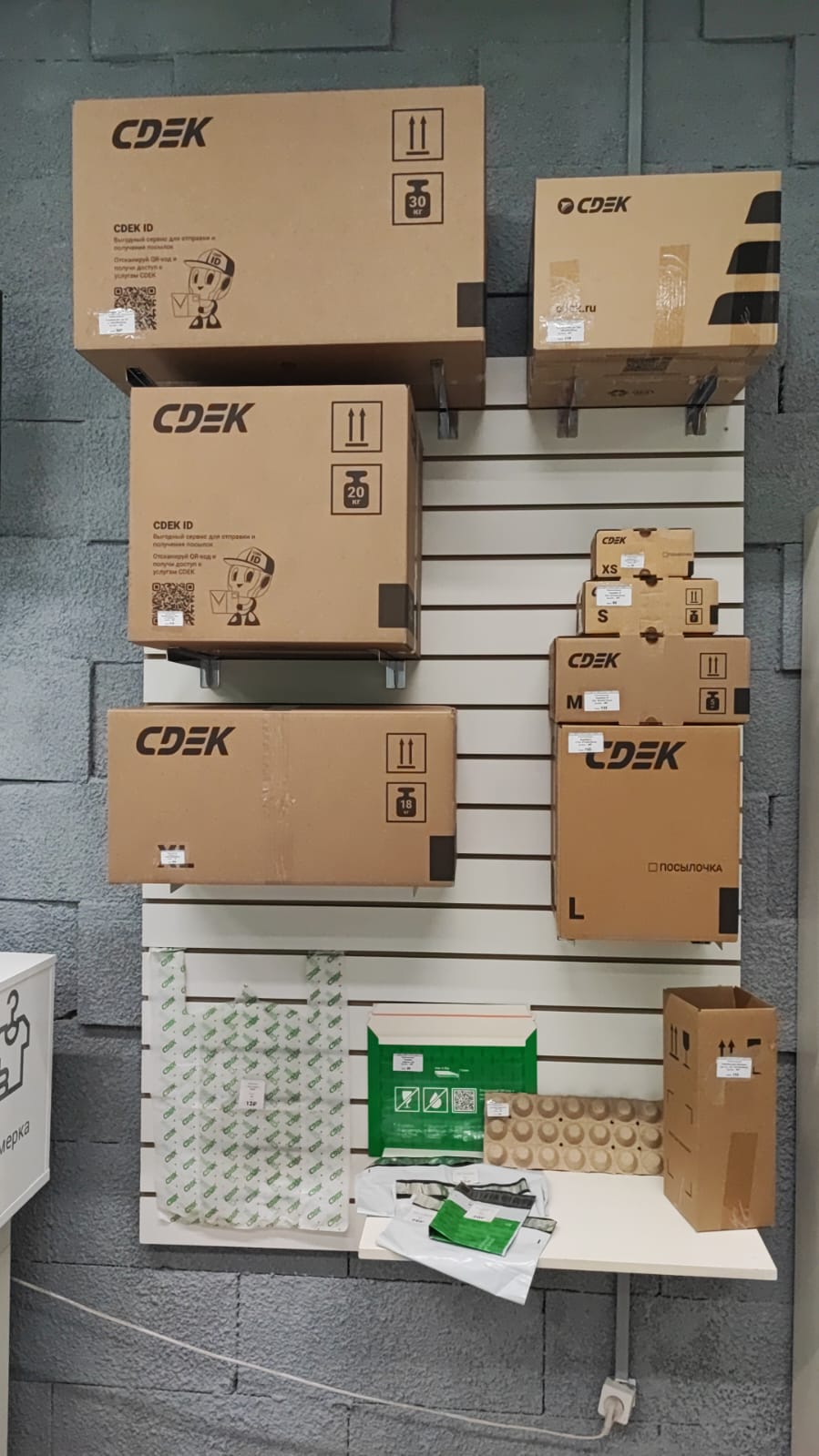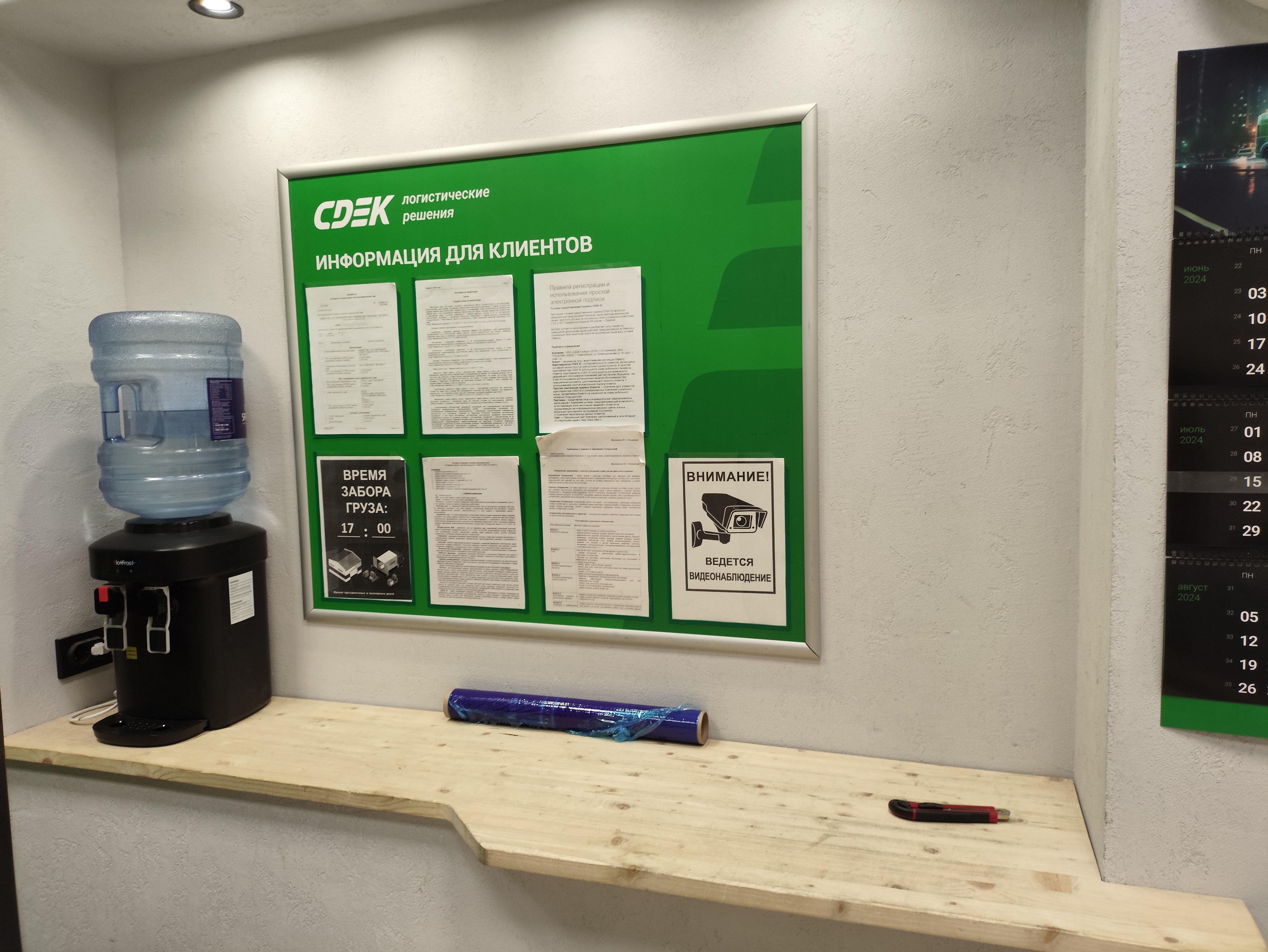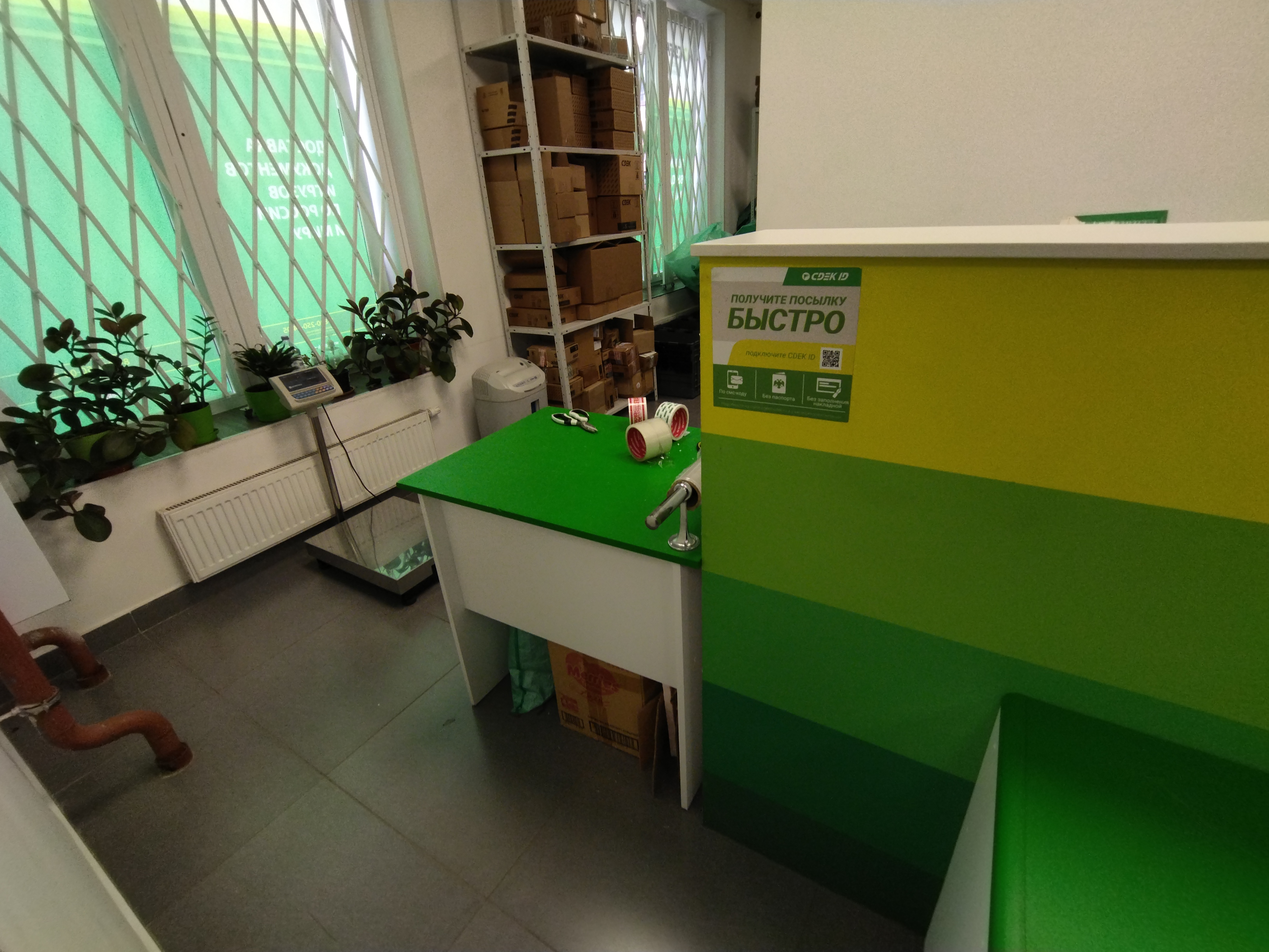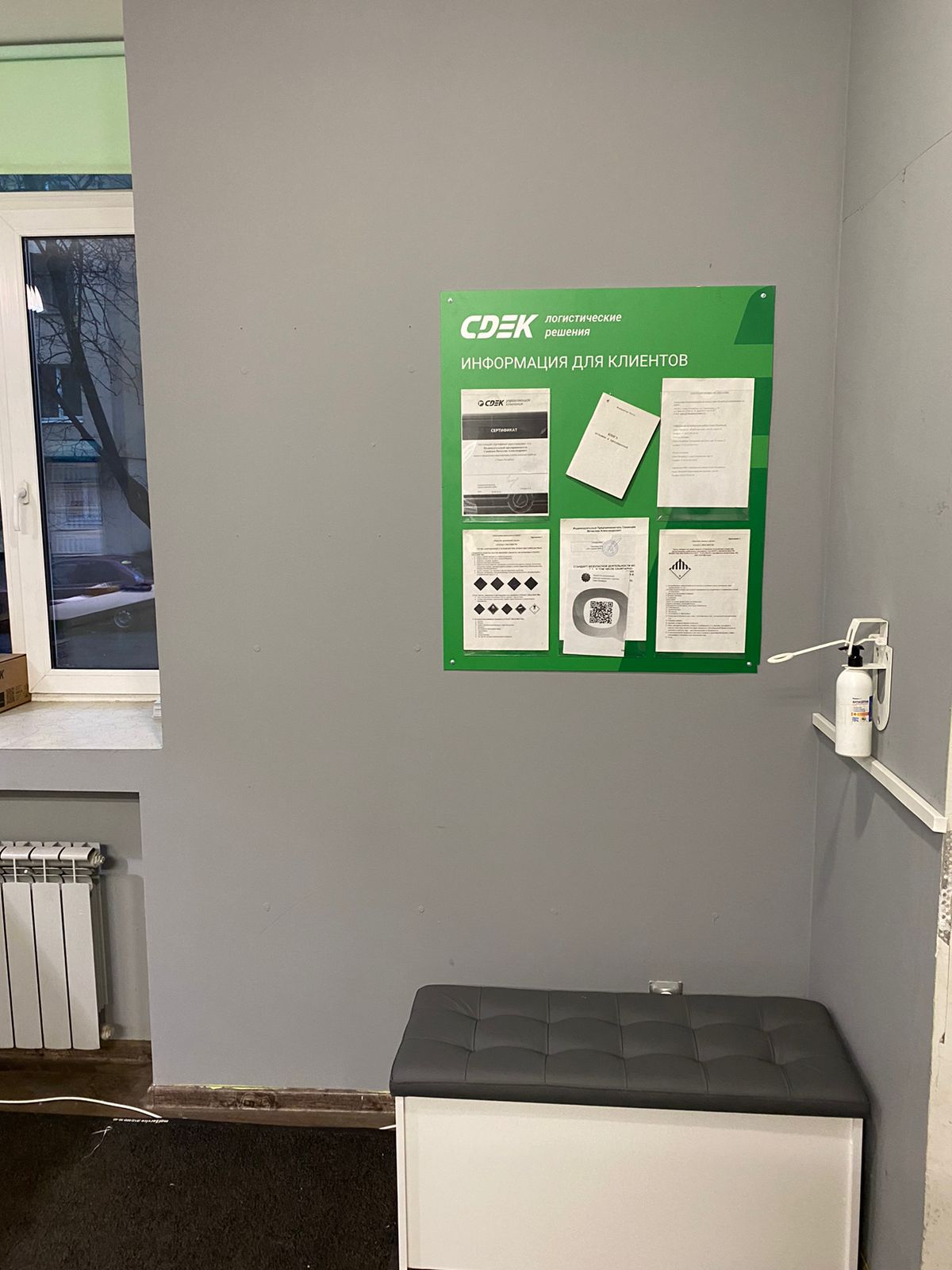 От автобусной остановки "Проспект Культуры", вниз, вдоль жилых домов по проспекту Культуры, у первого жилого дома - вывеска "CDEK".