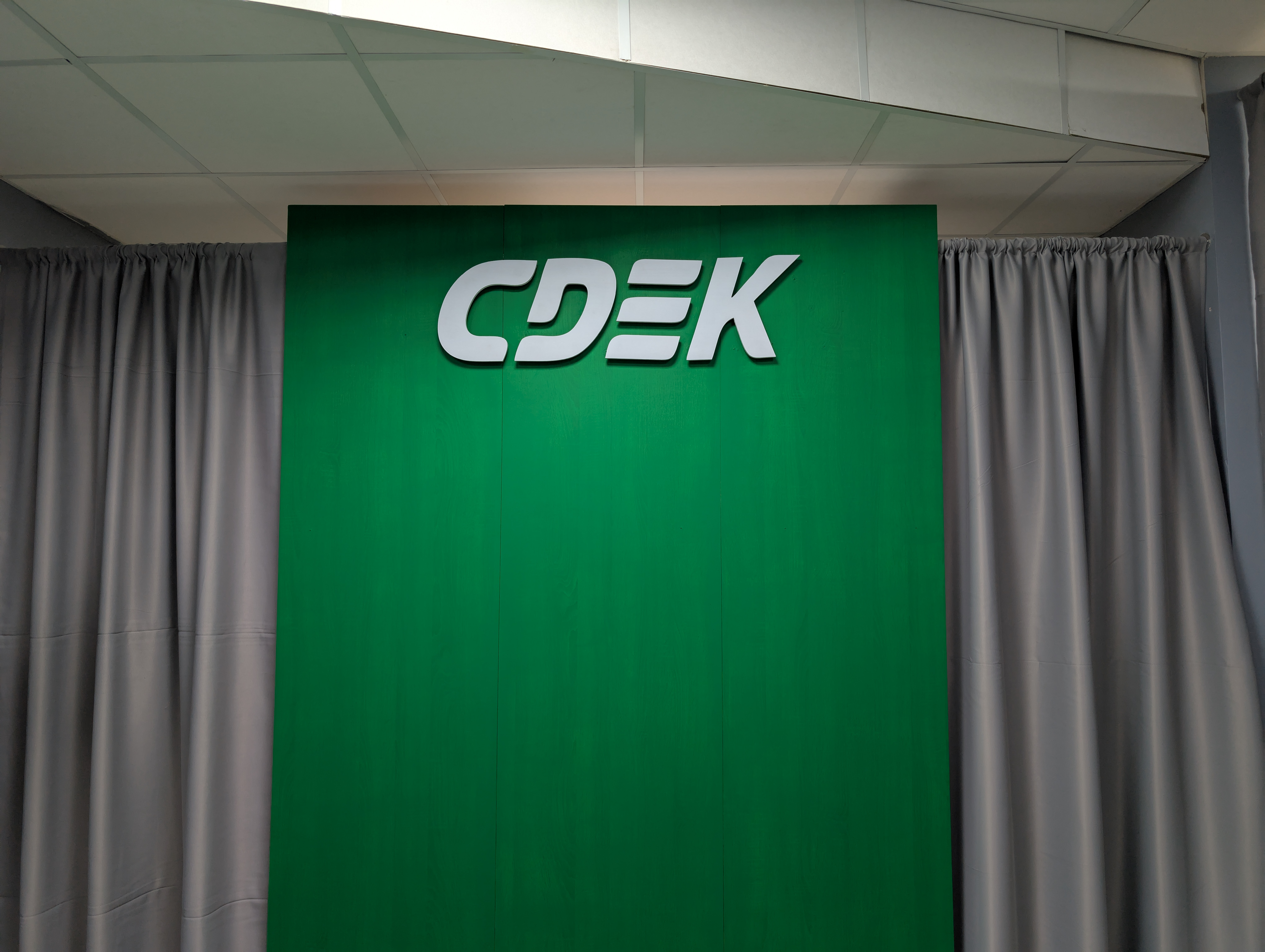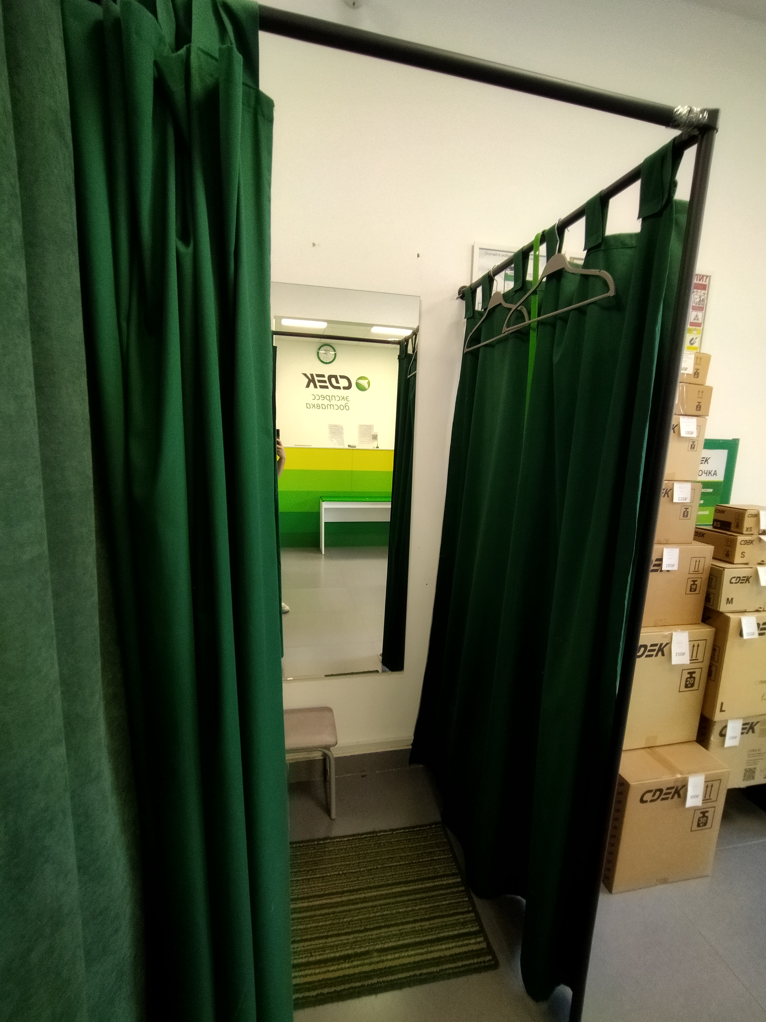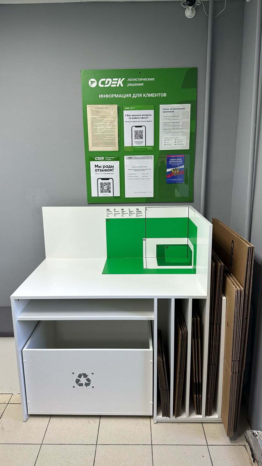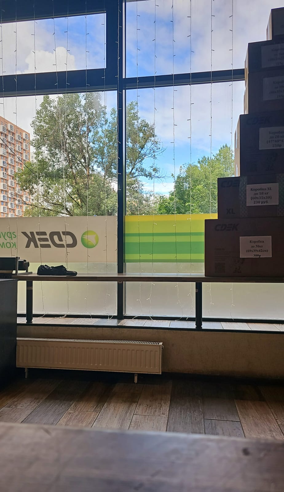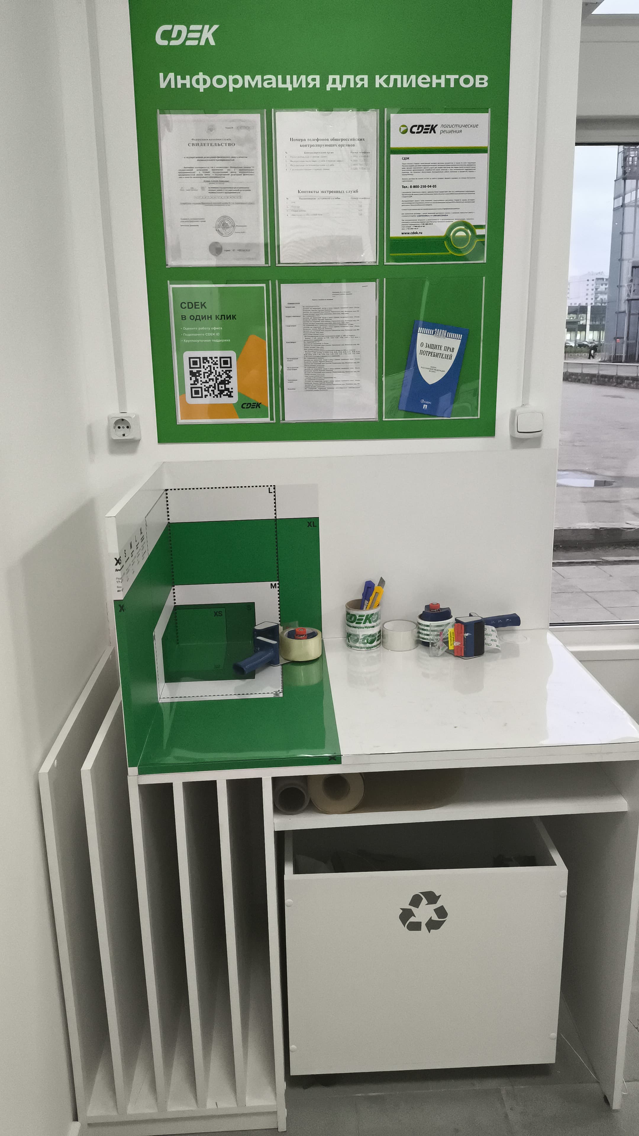 От автобусной остановки "Проспект Культуры", вниз, вдоль жилых домов по проспекту Культуры, у первого жилого дома - вывеска "CDEK".