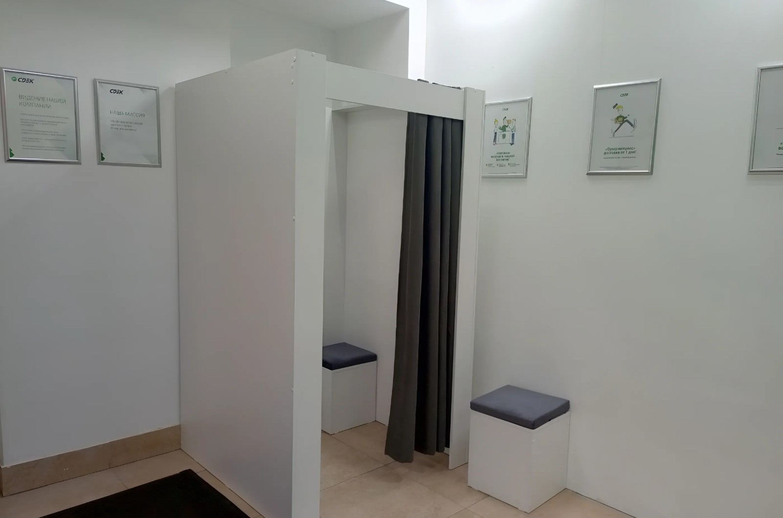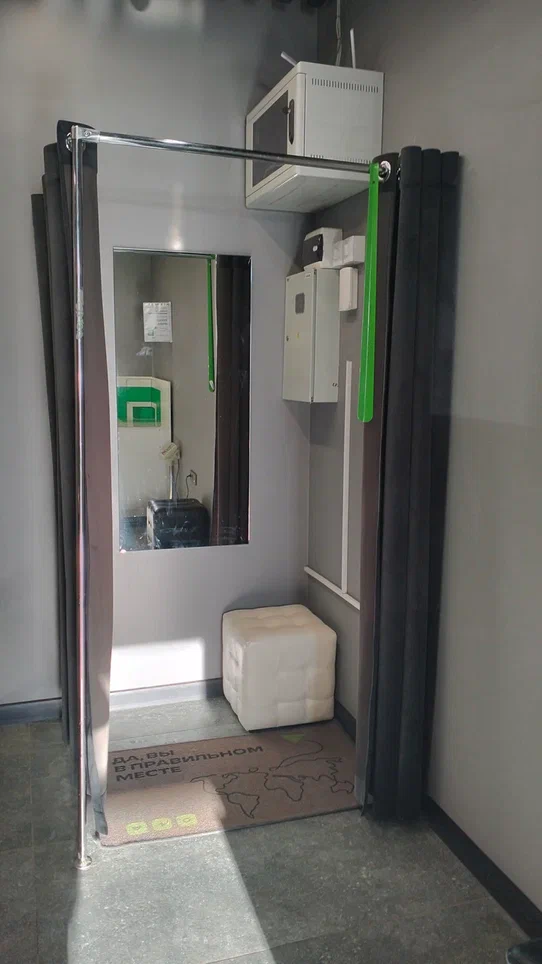 Войти в турагентство Слетать.ру через центральный вход, на 1 этаже около входа расположен постамат.