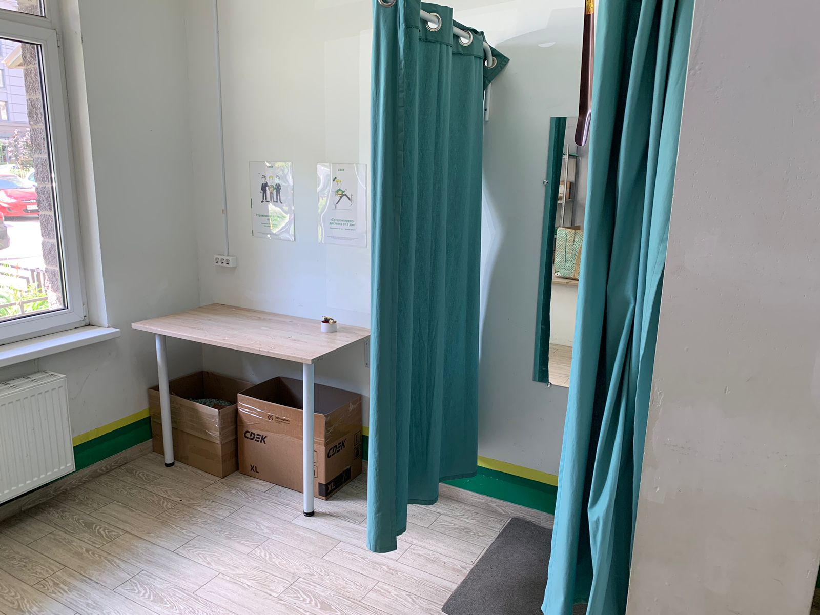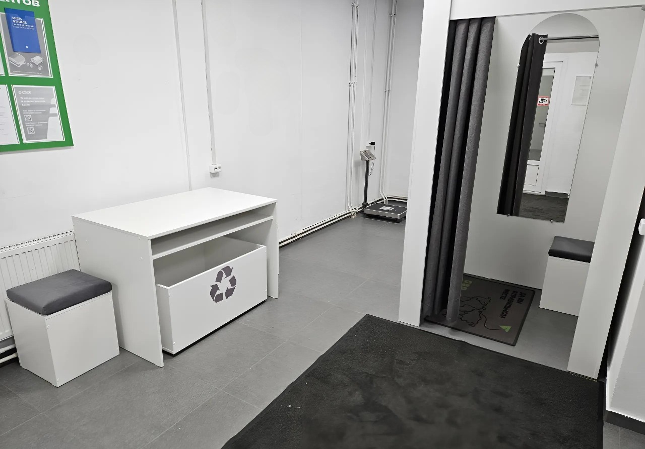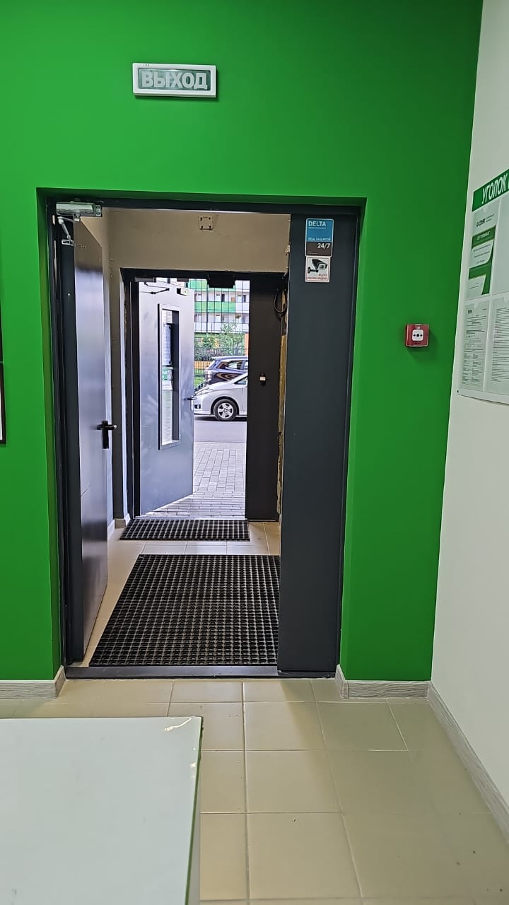 Постамат расположен на 1-м этаже, рядом со входом в Дом быта.