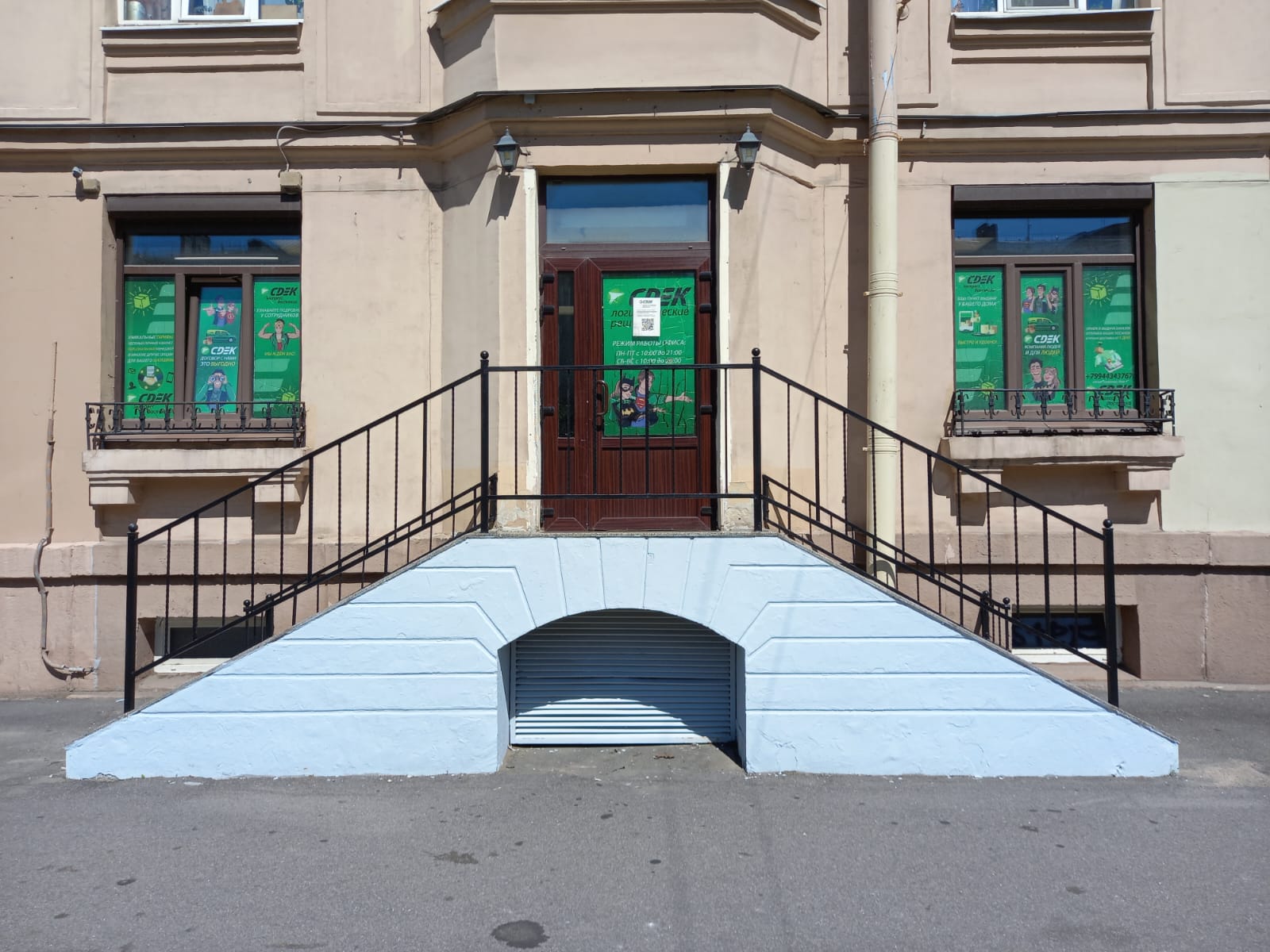 Второй жилой дом от ул. Бухарестская в сторону ул. Будапештская, коммерческое помещение на 1-м этаже жилого дома, 7-я дверь от улицы Бухарестская. Вход со стороны ул. Белы Куна.