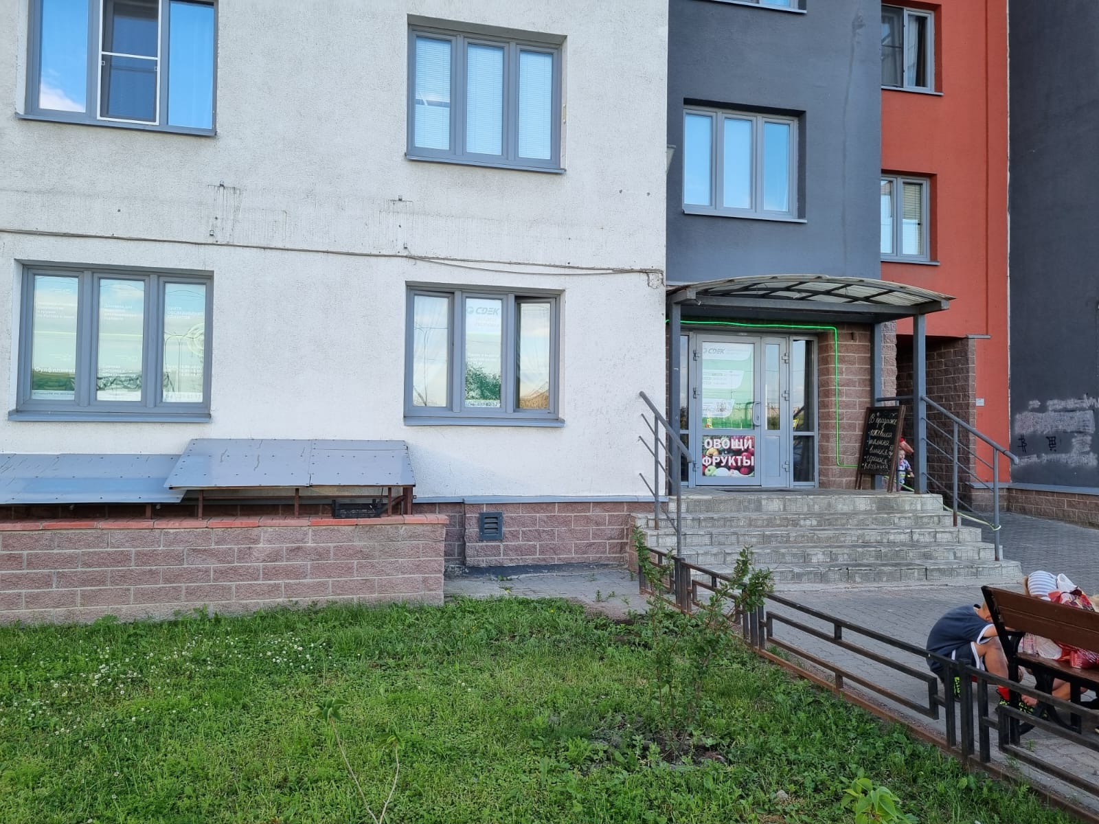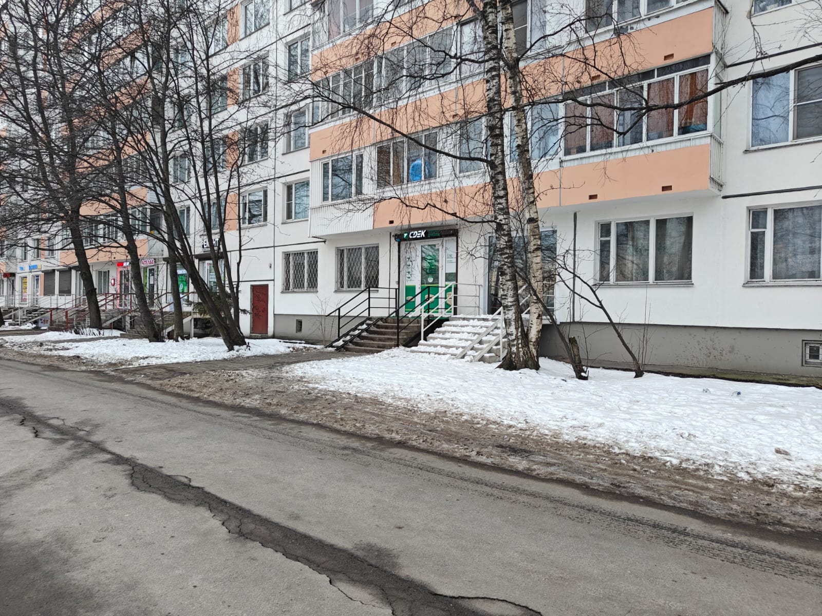 Жилой дом на углу улиц Парашютной и маршала Новикова, вход в помещение с улицы маршала Новикова (с фасада здания, не заезжая во двор). От угла дома до входа расстояние приблизительно 80 метро