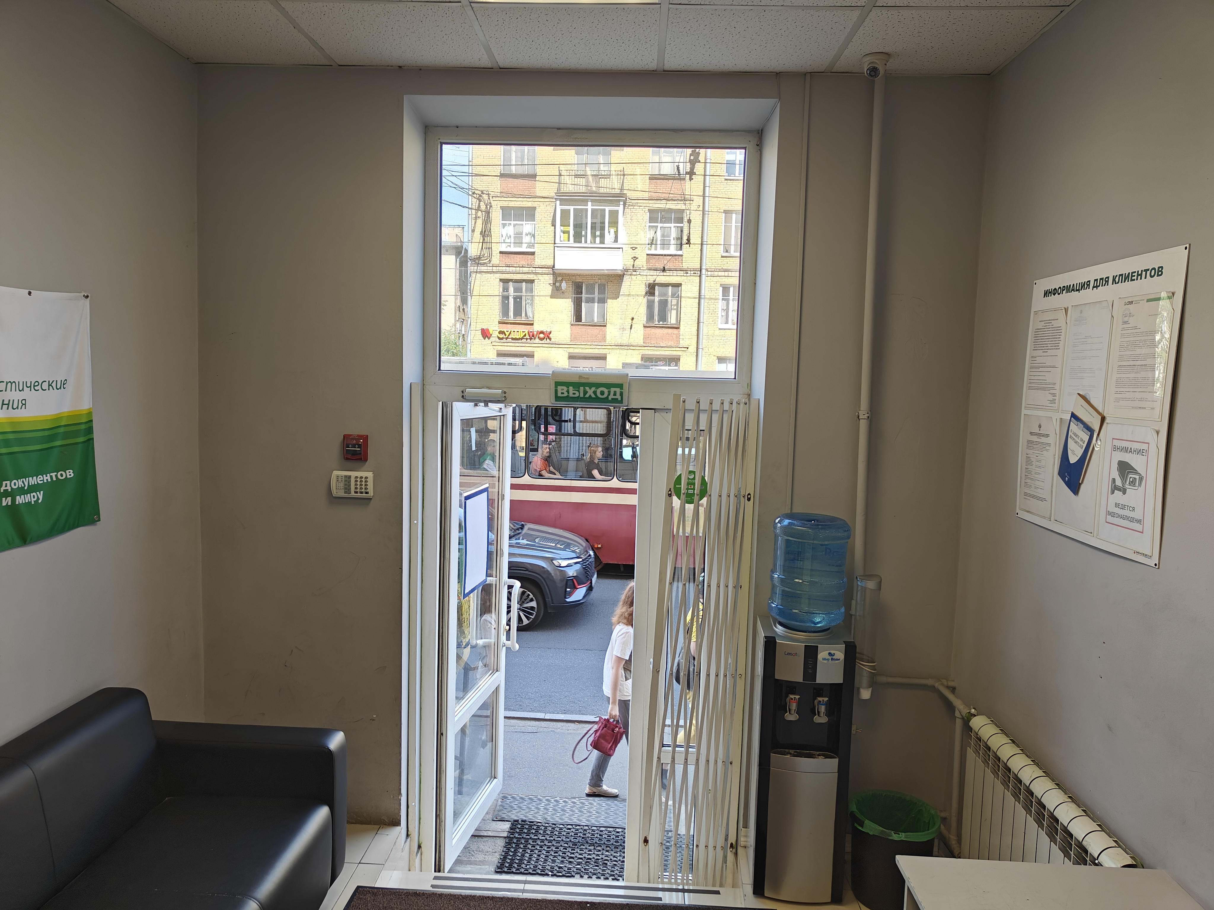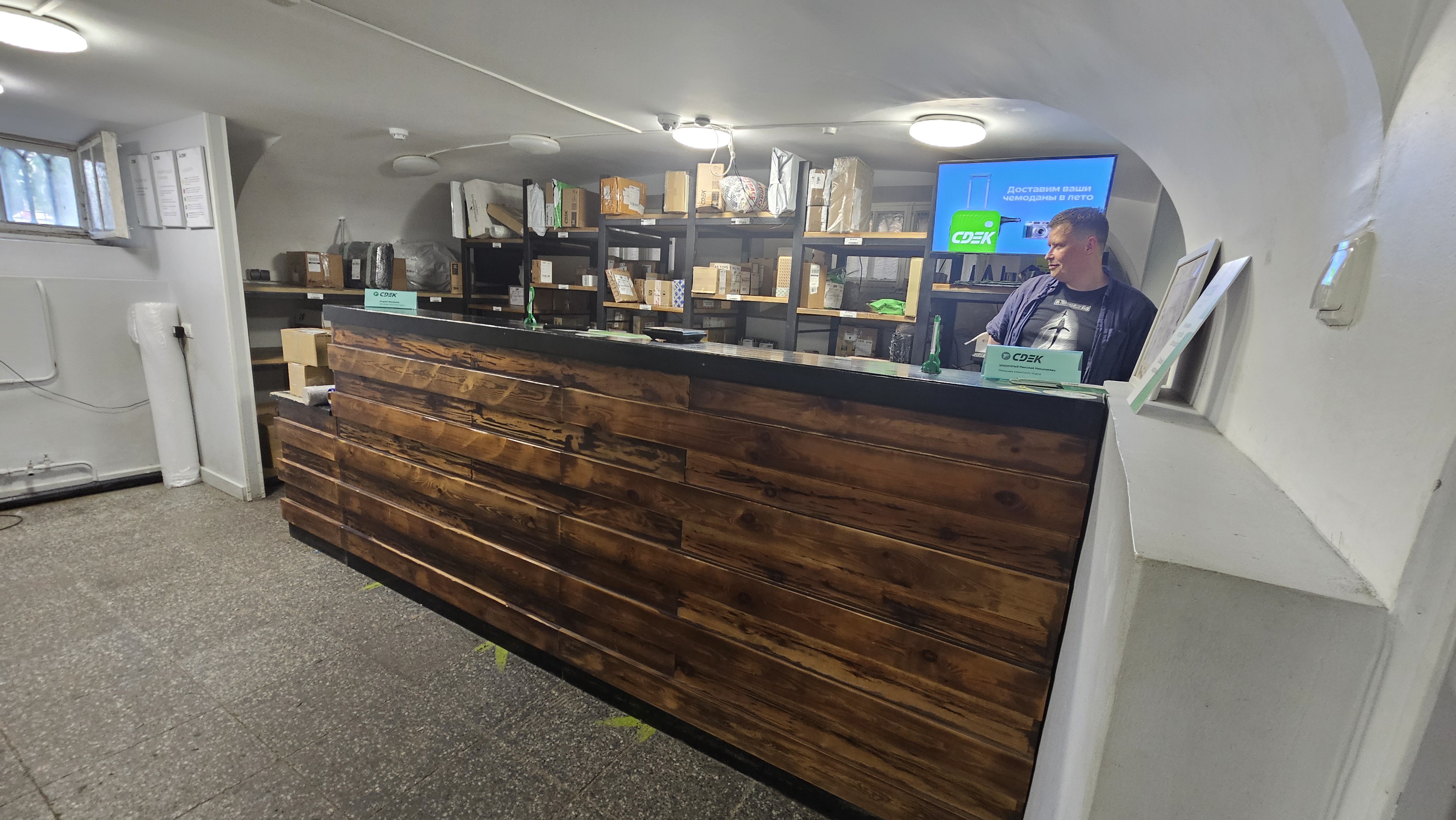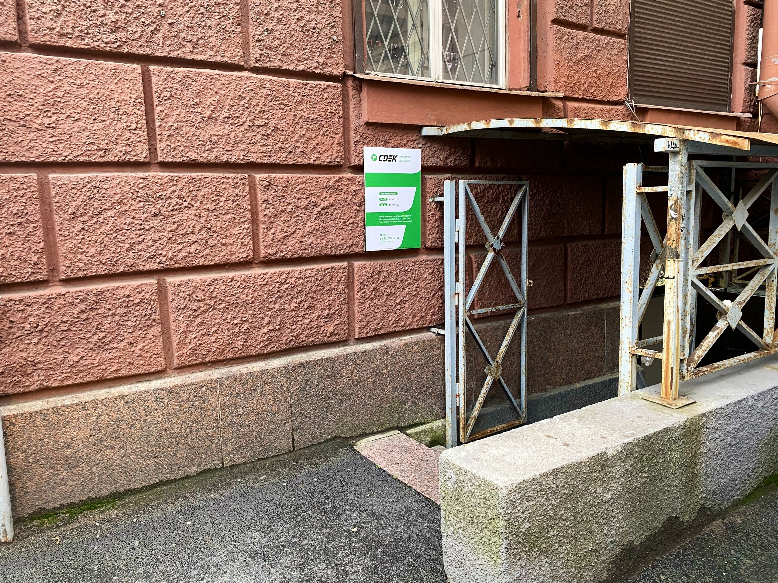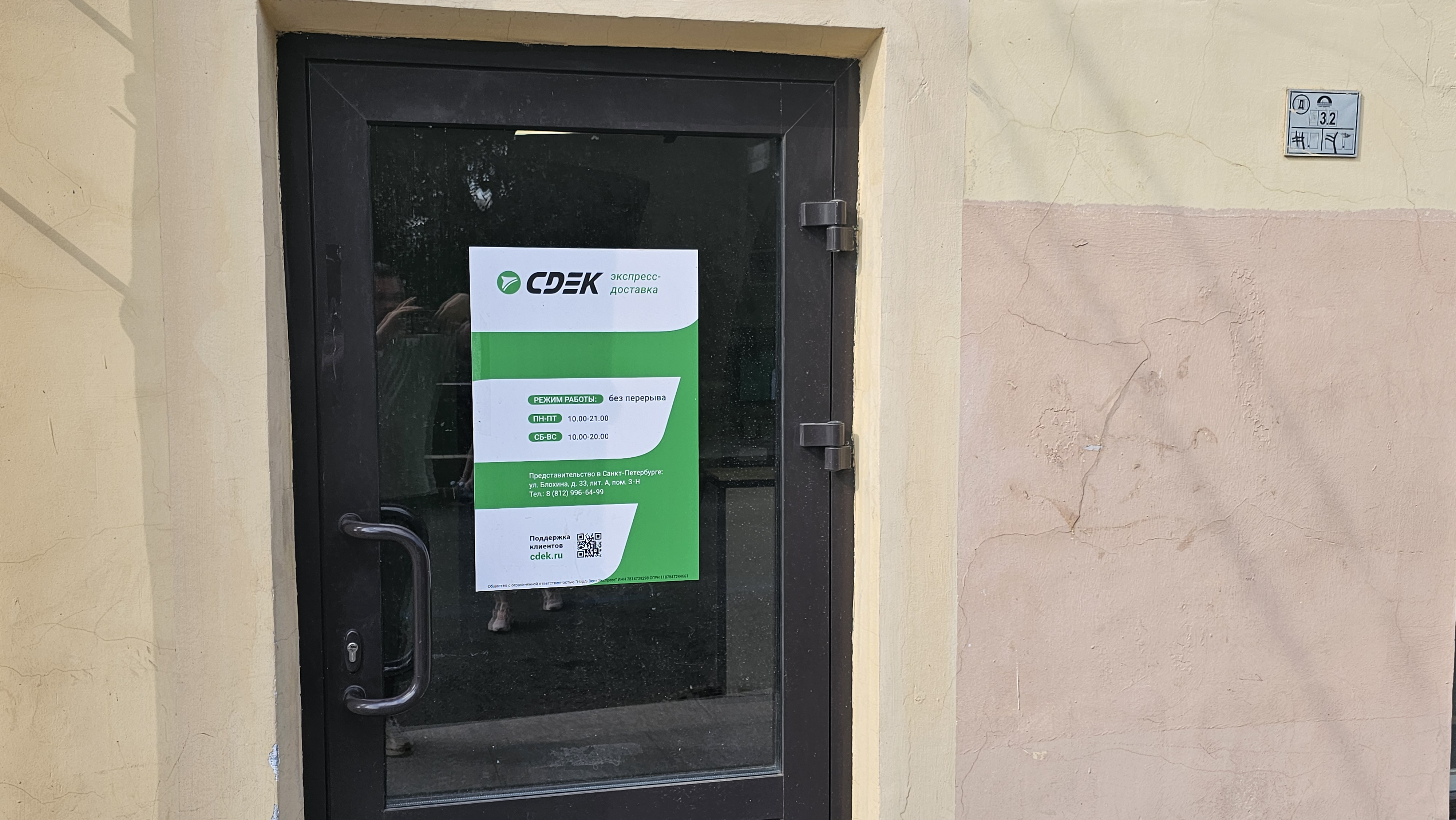Двери офиса выходят непосредственно на Тележную улицу, ориентироваться на вывески «СДЭК»