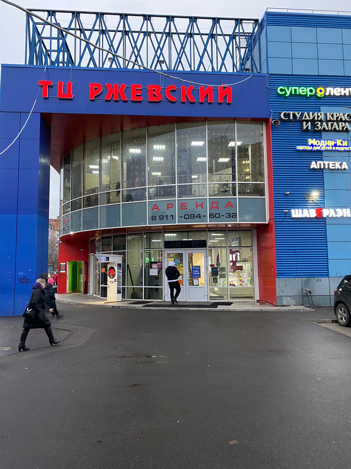От остановки Богатырский проспект прямо 150м до здания «Ленты», вход с левого торца под вывеску «Торговый центр»