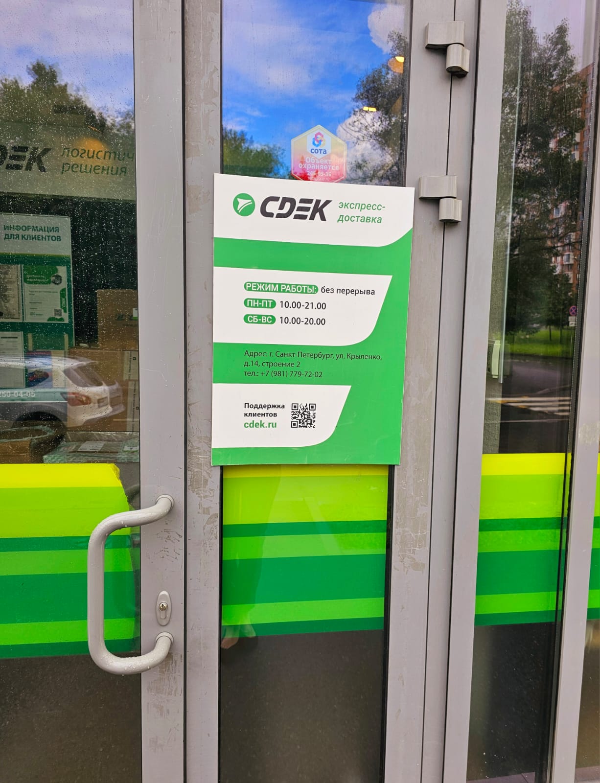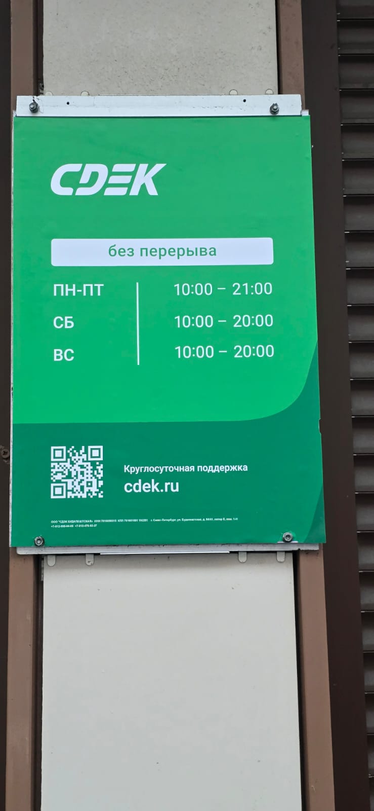 Метро Купчино (выход в сторону Балканский, Фрунзенский район). Идти в сторону Окей до ТЦ Балатон. Вход в СДЭК отдельный, с правой стороны от магазина "Семишагофф".