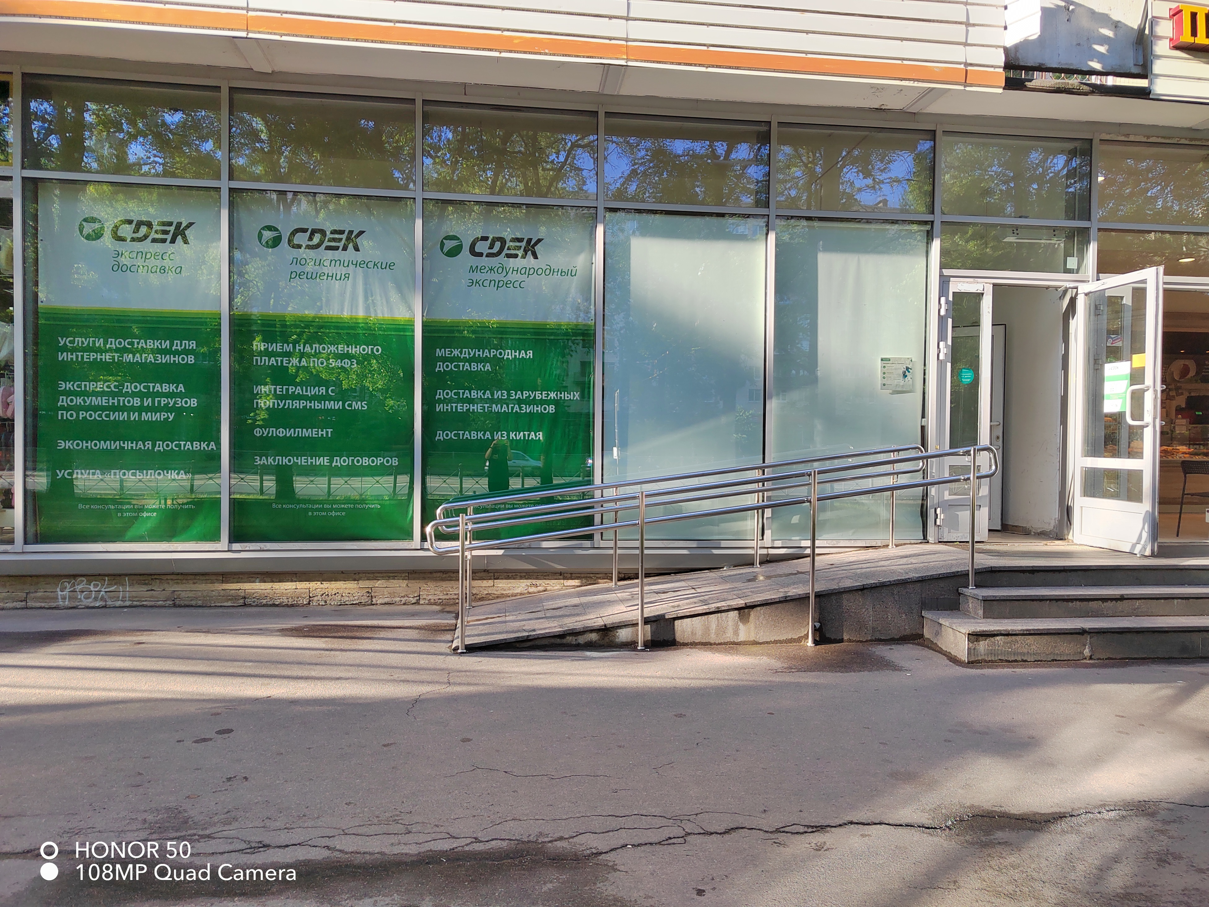 По ул. Есенина, перед перекрестком Луначарского и Есенина, поворот налево во двор, на торце дома вывеска СДЕК.