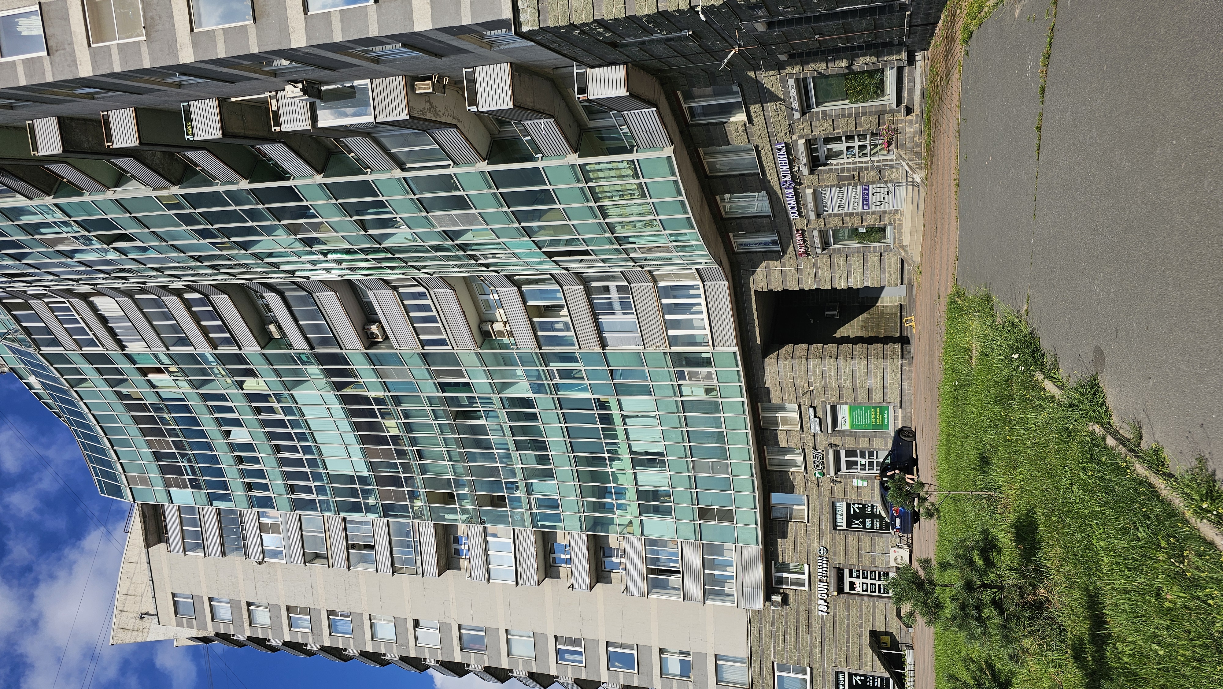 Здание бизнес-центра на ул. Седова, 13. По центру здания вывеска "СДЭК"