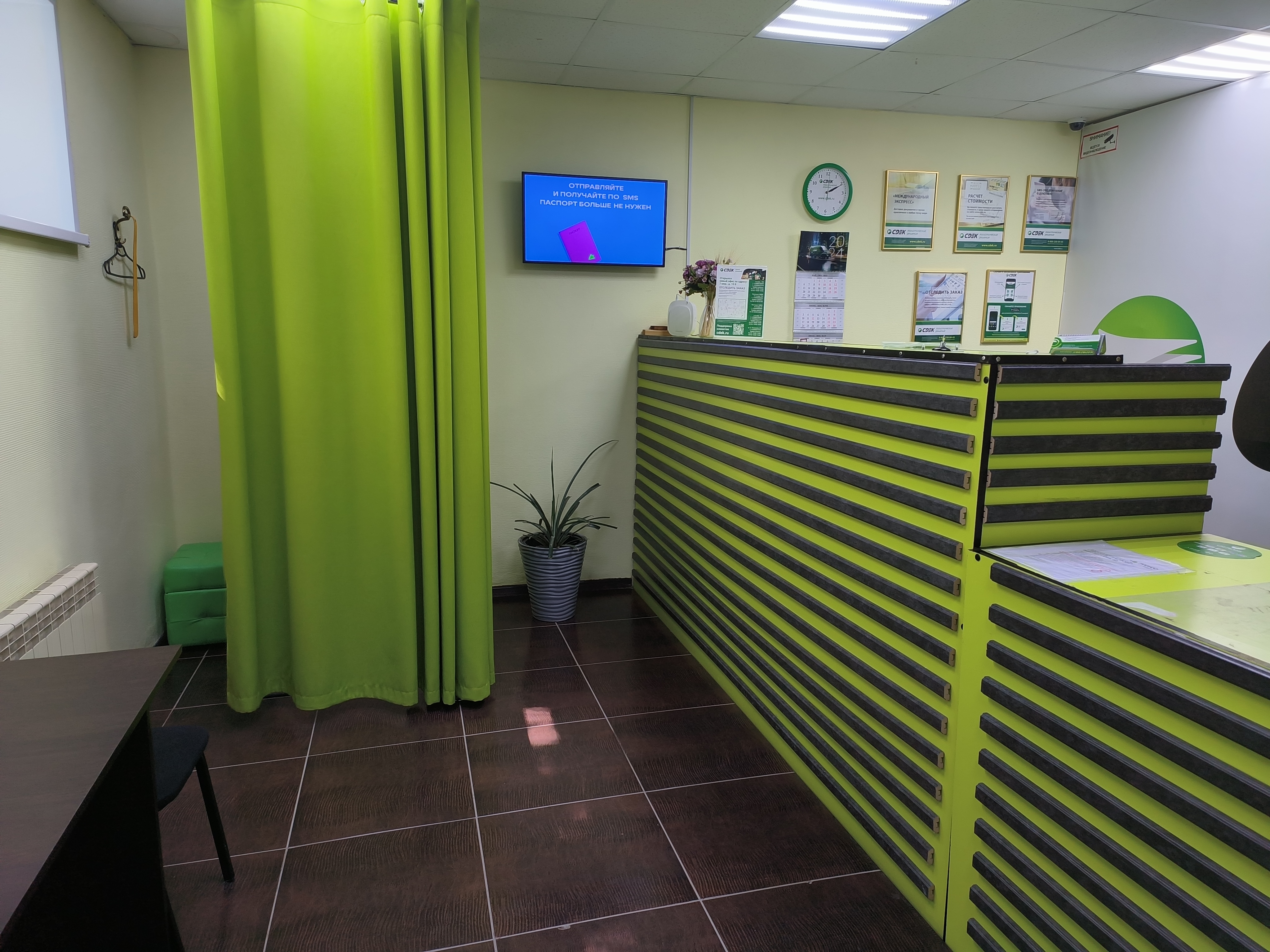 Войти в отделение банка Совкомбанк через центральный вход, на 1 этаже расположен постамат.