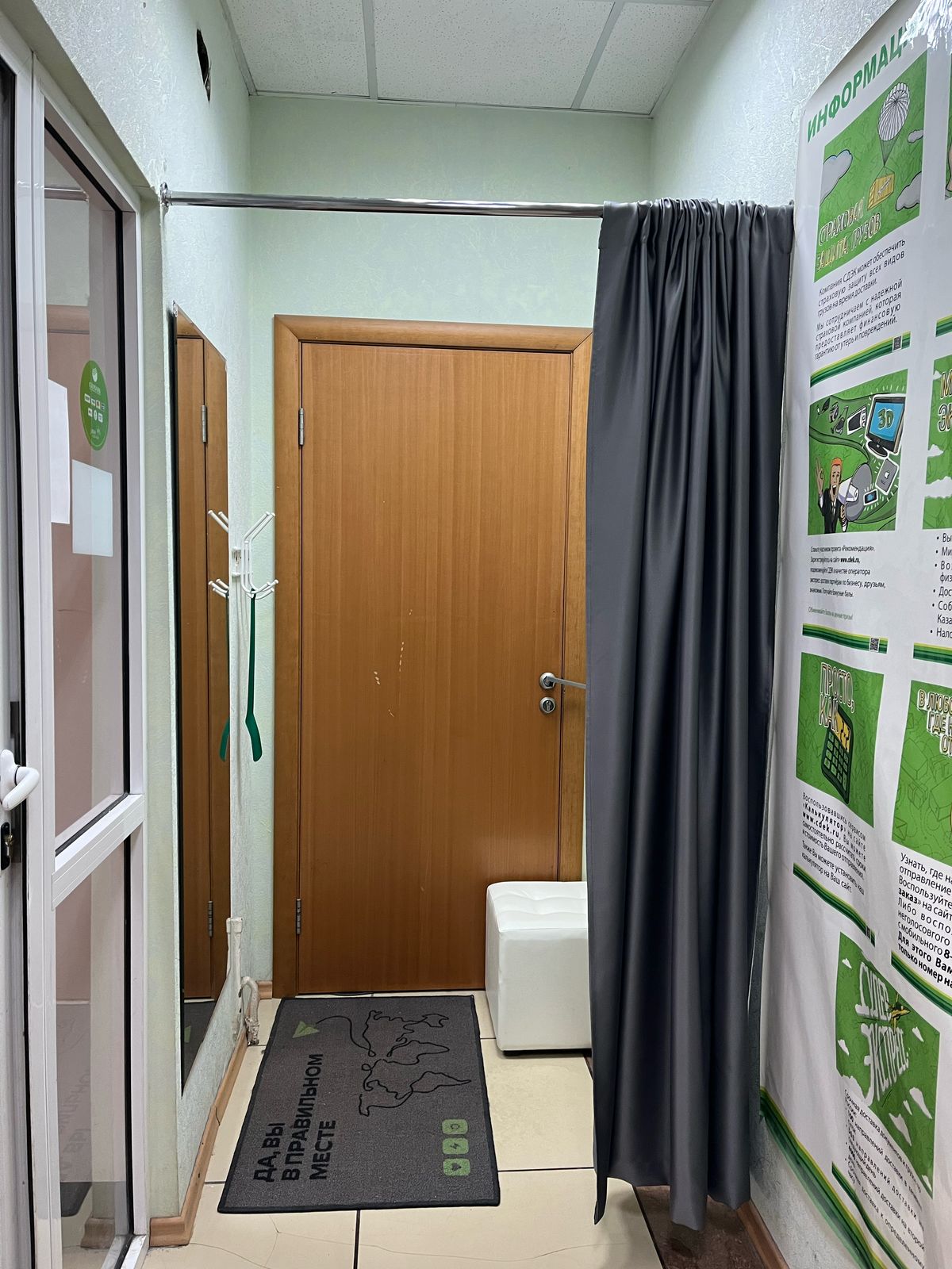 Войти в дом молодежных организаций Шанс через центральный вход, на 1 этаже расположен постамат.