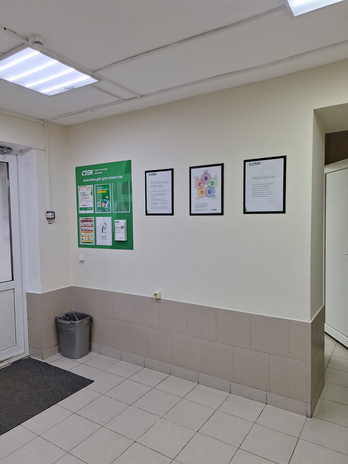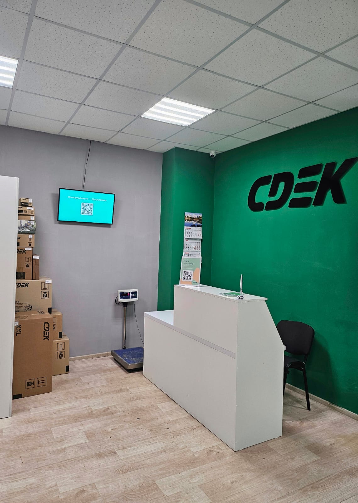Остановка "Автодорожный техникум", автобусные маршруты № 20, 510. Отдельный вход , над входом вывеска "CDEK".