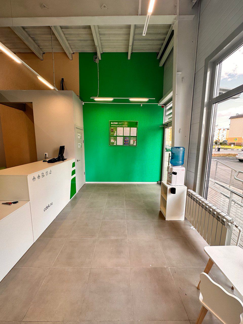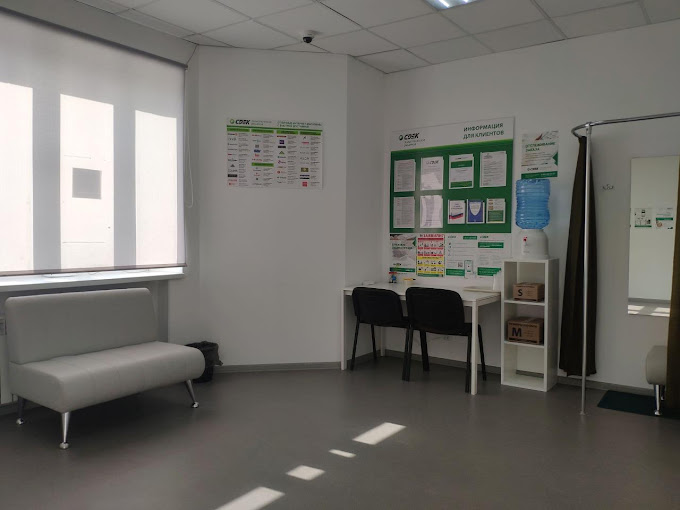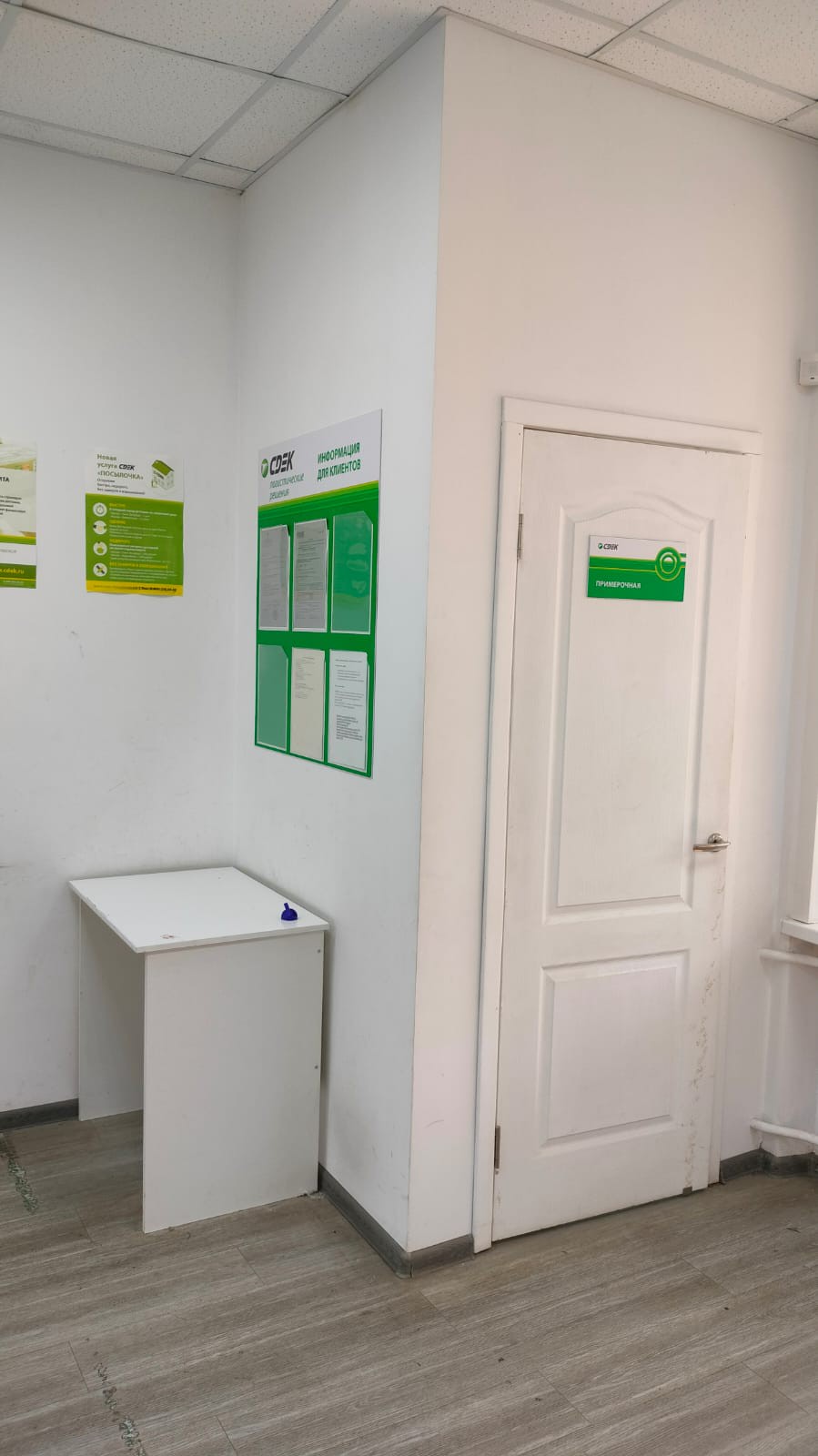 Войти в отделение банка Совкомбанк через центральный вход, на 1 этаже