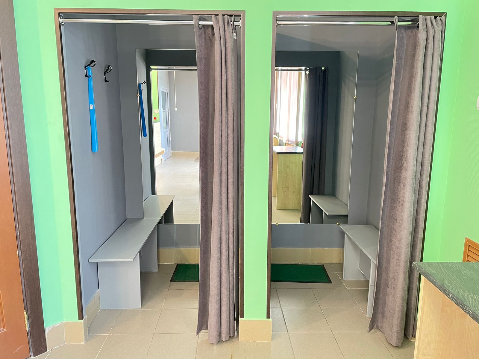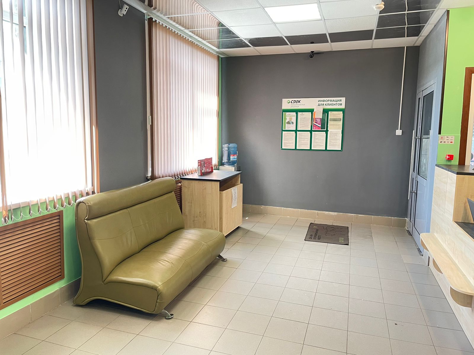 Войти в отделение банка Совкомбанк через центральный вход, на 1 этаже расположен постамат.