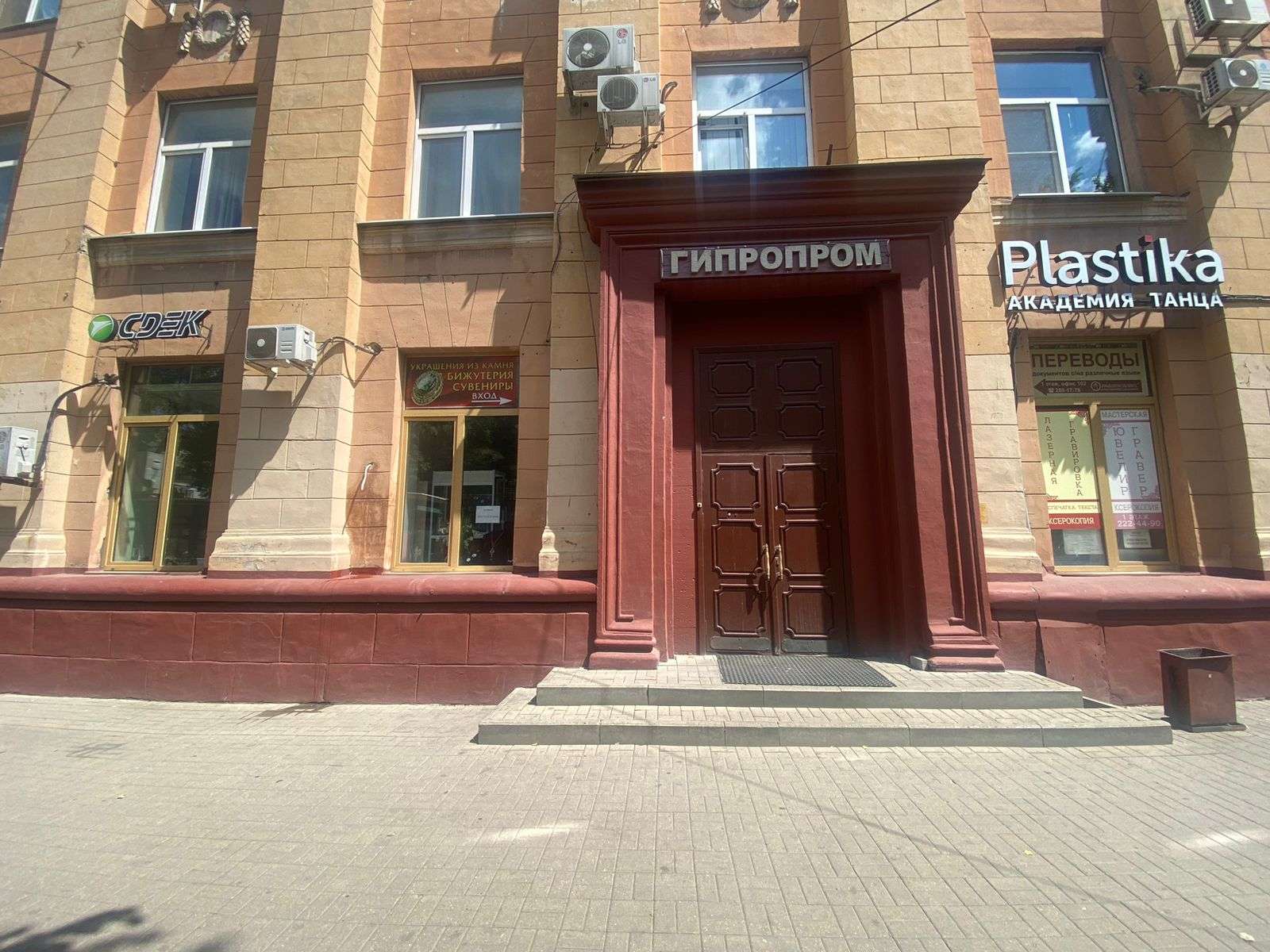 Здание Випласта, вход с проспекта Труда. Парковка находится во дворе здания