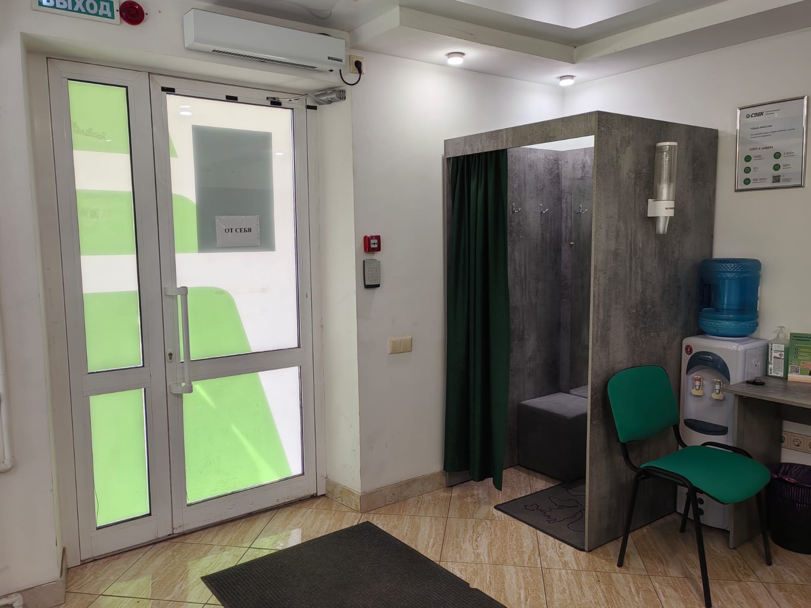 Вход в офис со стороны улицы Летчика Колесниченко - красная линия