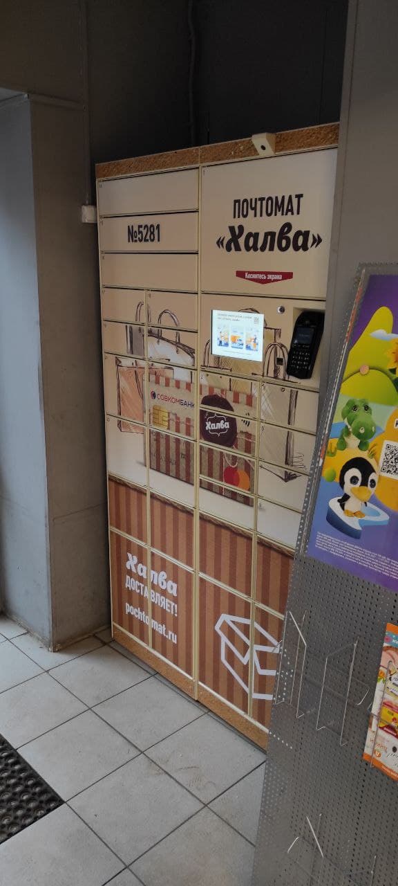 Почтомат Халва. Войти в супермаркет Дикси через центральный вход, на 1 этаже в прикассовой зоне расположен почтомат