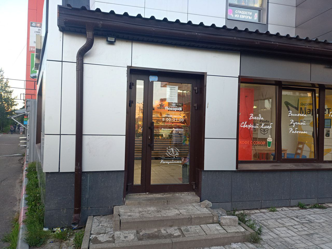 Войти в Пекарню "Корица" через центральный вход, на 1 этаже расположен постамат.
