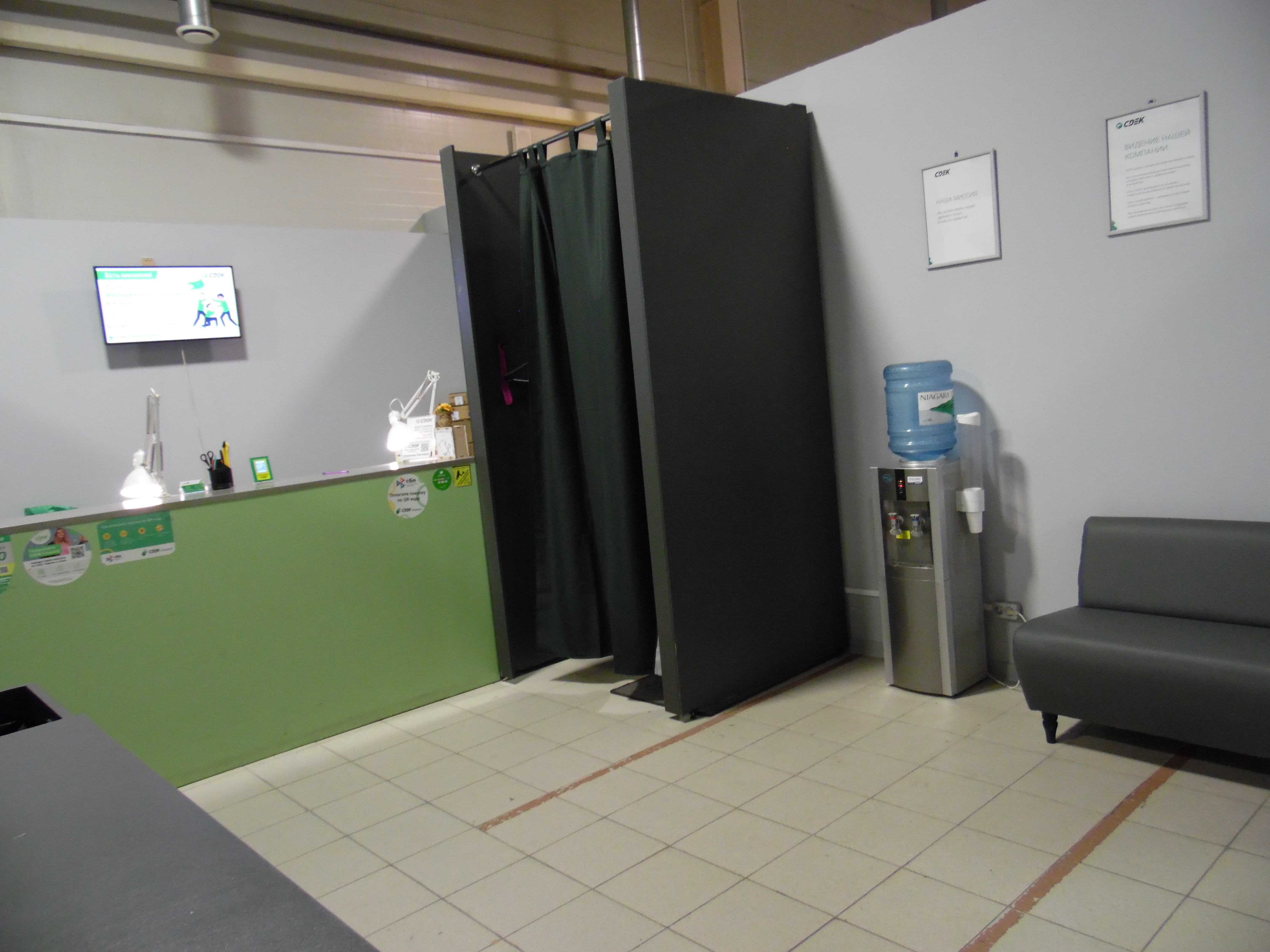 Войти в отделение банка Совкомбанк через центральный вход, на 1 этаже